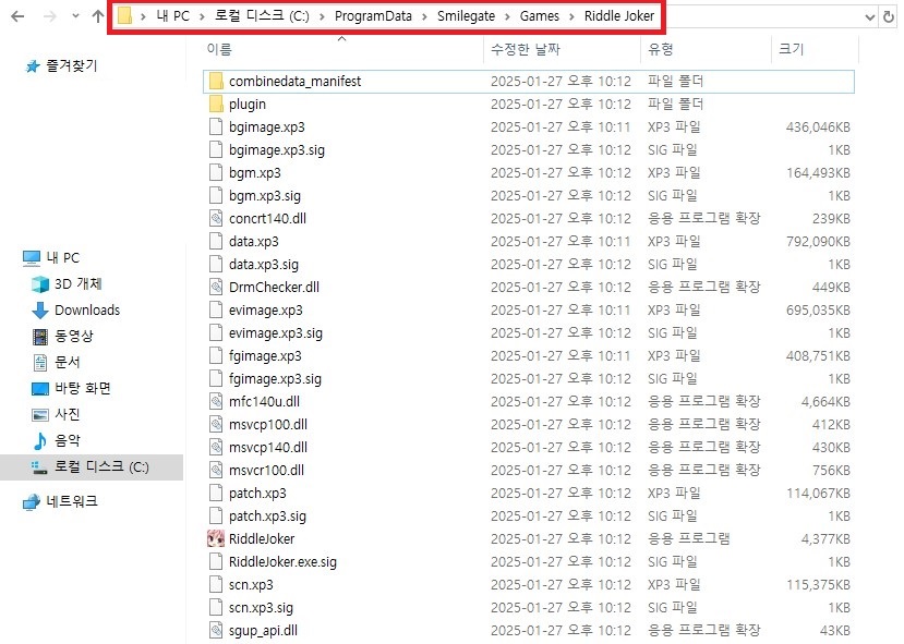 - New클라이언트 기준 : C:\ProgramData\Smilegate\Games\Riddle Joker