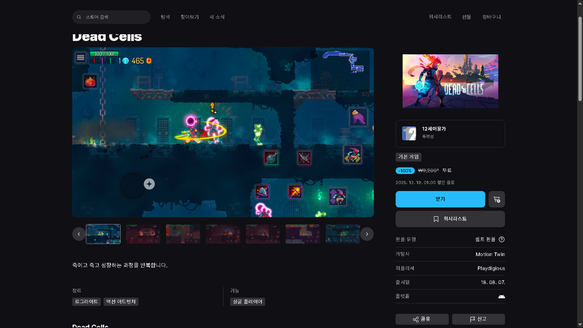 https://store.epicgames.com/ko/p/dead-cells-android-eb6382 Dead Cells address until the 19th at 01:00~