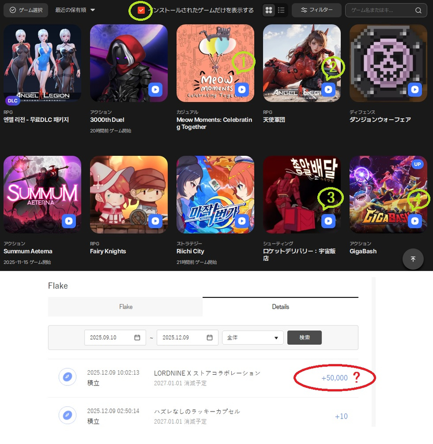 I installed all four free games before the deadline, but for some reason I only received 50,000 Flake instead of 100,000 Flake. Why??? This is terrible.