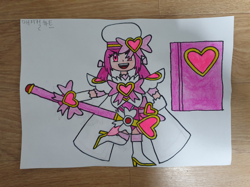 A female lead wearing a female magician outfit like this. (Magical Heart)