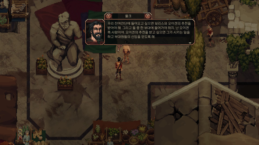 <Start by talking to Volk who is wandering around the market.>