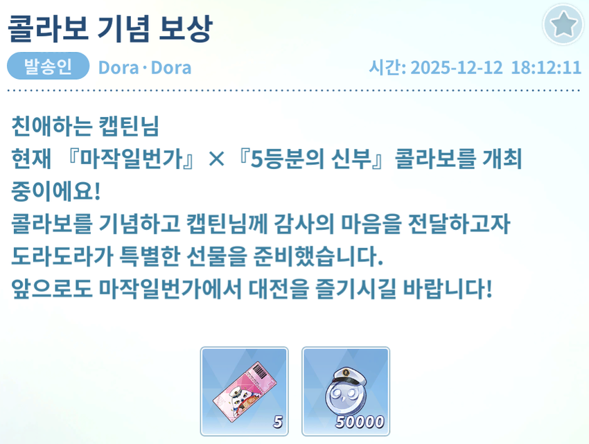 #일번가5등분의신부콜라보 In celebration of, we have prepared a special in-game reward filled with gratitude.
