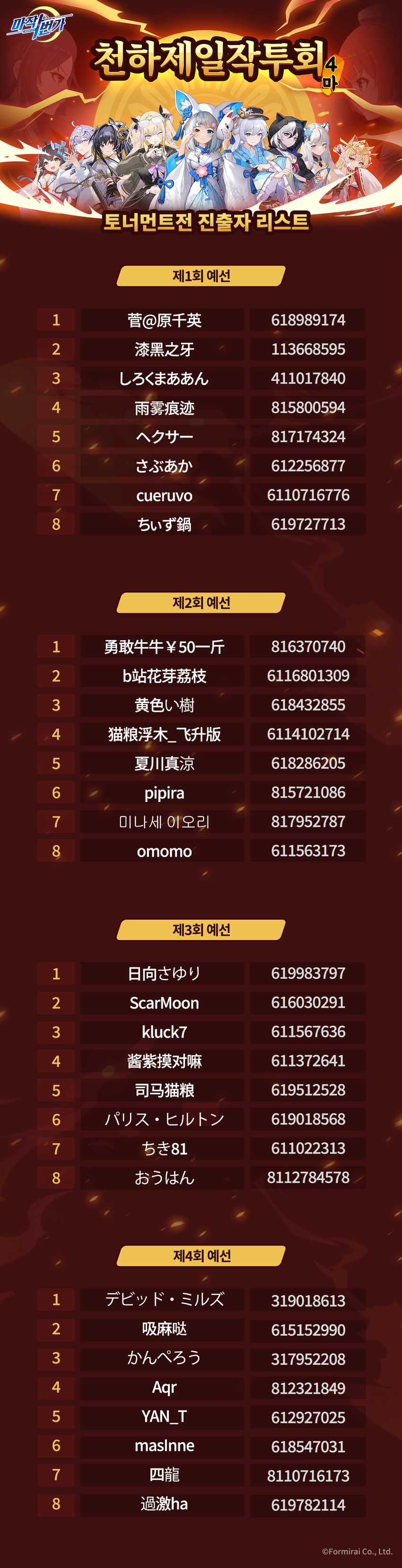 As a result of the fierce competition, the following 32 captains have passed the preliminary round!