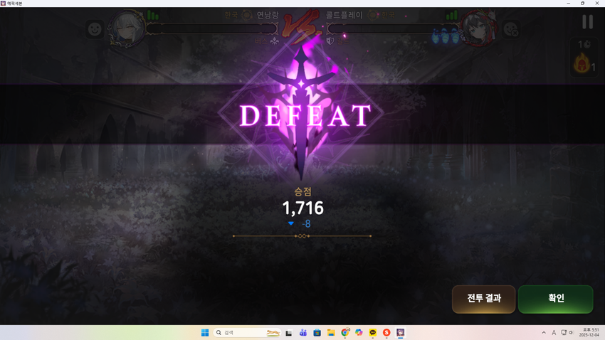 The situation is that Dumangka's S3 hit, and Bang Hwa-young countered, and the opponent's Dumangka died.