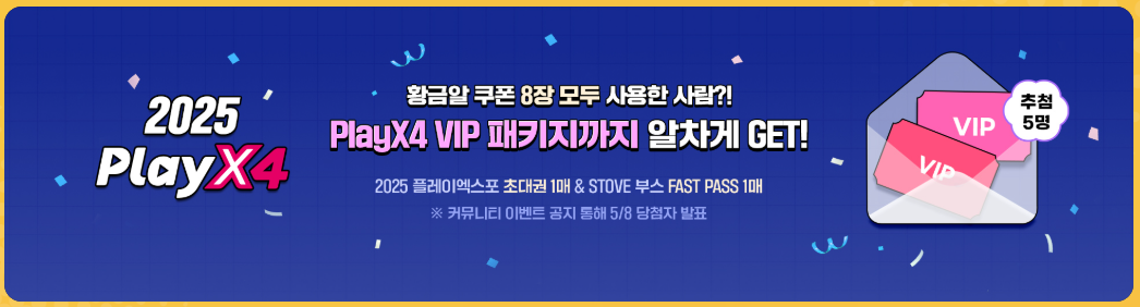 - 황금알 쿠폰 8장 모두 사용 시 플레이엑스포 VIP 패키지 이벤트 응모 가능!