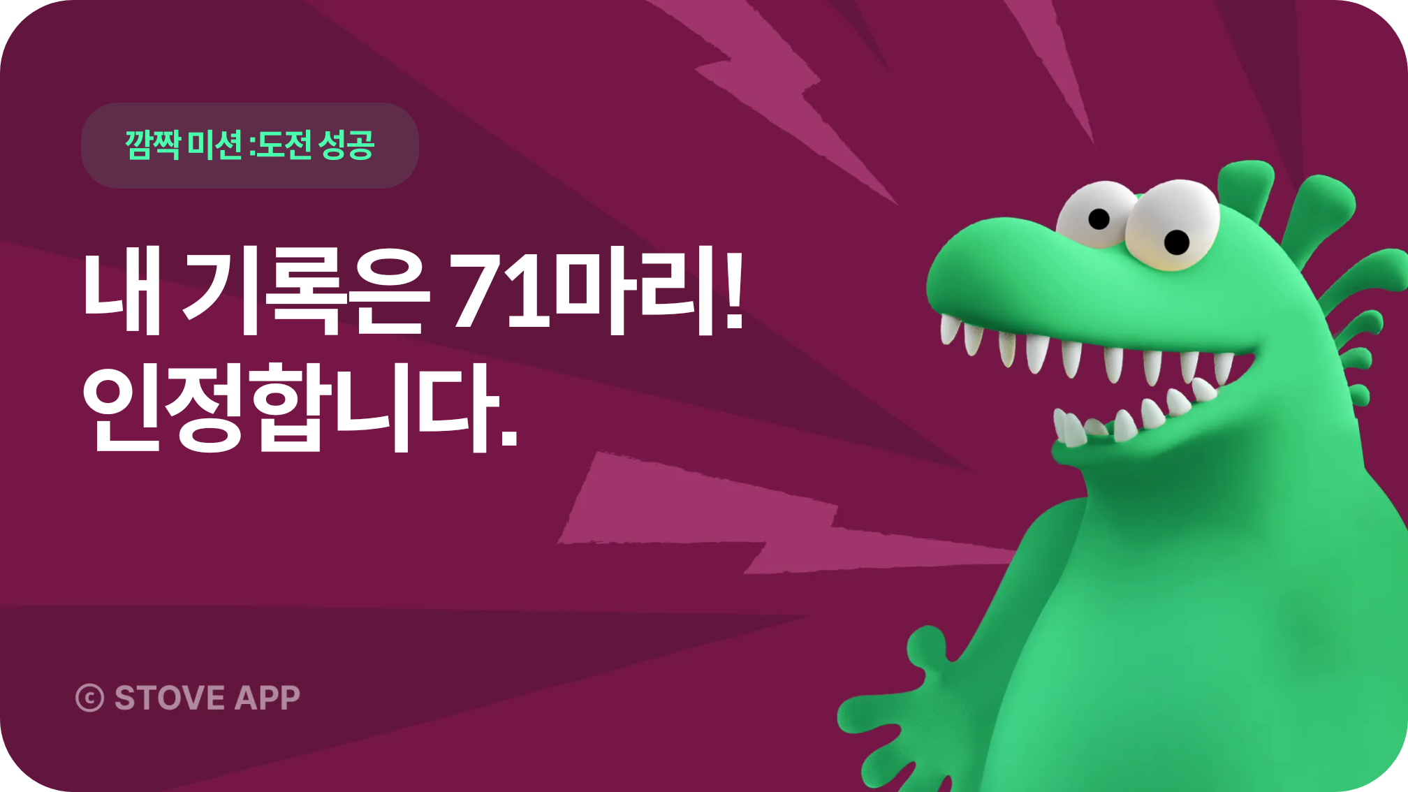 STOVE42207228님이 잡은 공룡은 71마리에요!