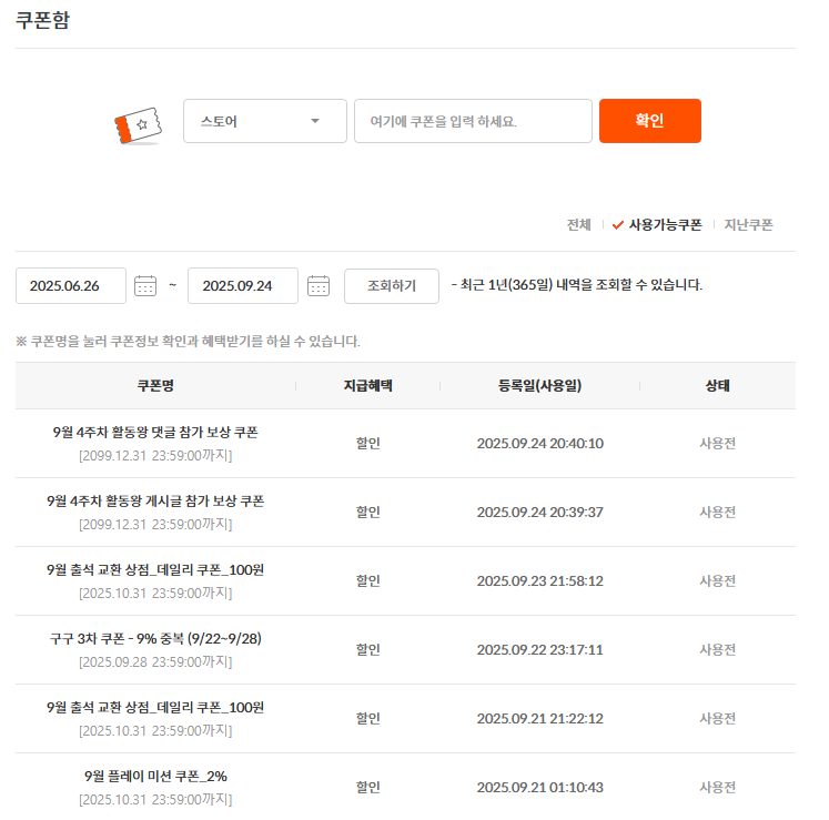 내일은 쿠폰이 들어오기를...!!