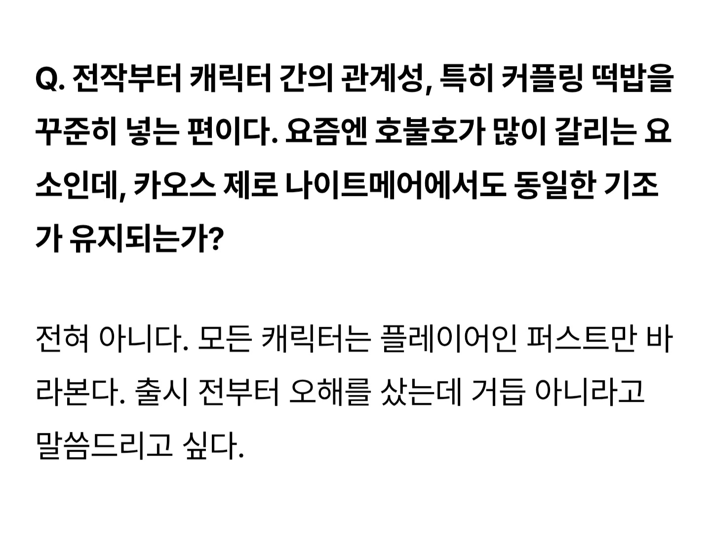 앞으로도 NPC가 아닌 플레이어블 픽업 케릭터끼리 연애하거나 엮이나요?