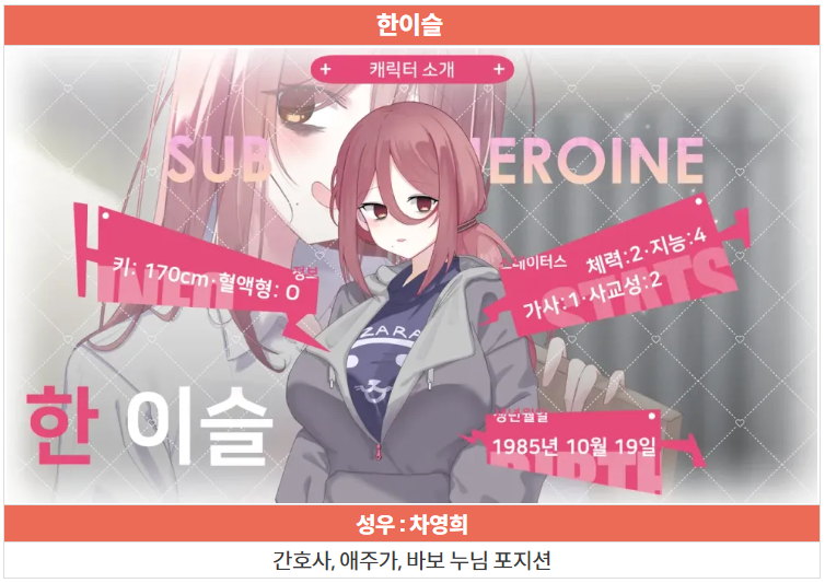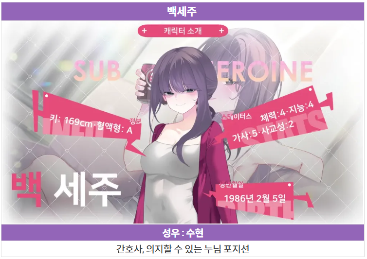 난치병을 앓는 병약(?)계... | 애주가(?)계... | 의지할 수 있는 멋진 누님계... |