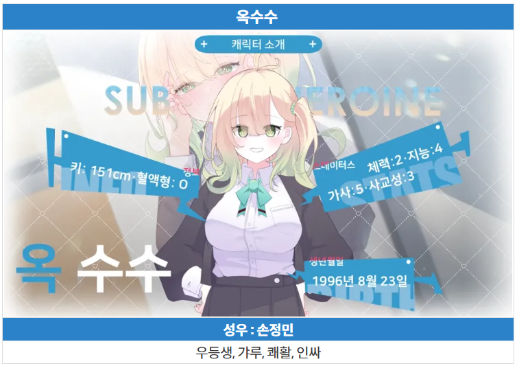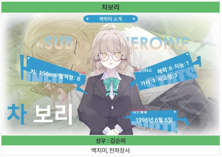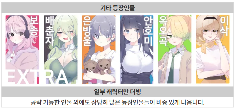 등장인물들은 서브컬쳐 히로인들의 공식(?)을 따릅니다.