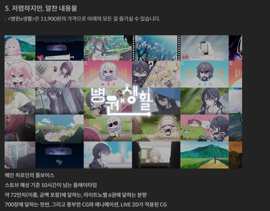 병원생활은 굉장히 많은 SD, LD 일러스트와 연출이 풍부하게 추가되어 있습니다.