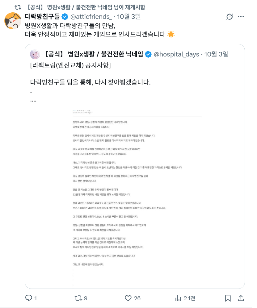 4년간의 노고를 통해 출시한 병원x생활을 플레이해 보았습니다.