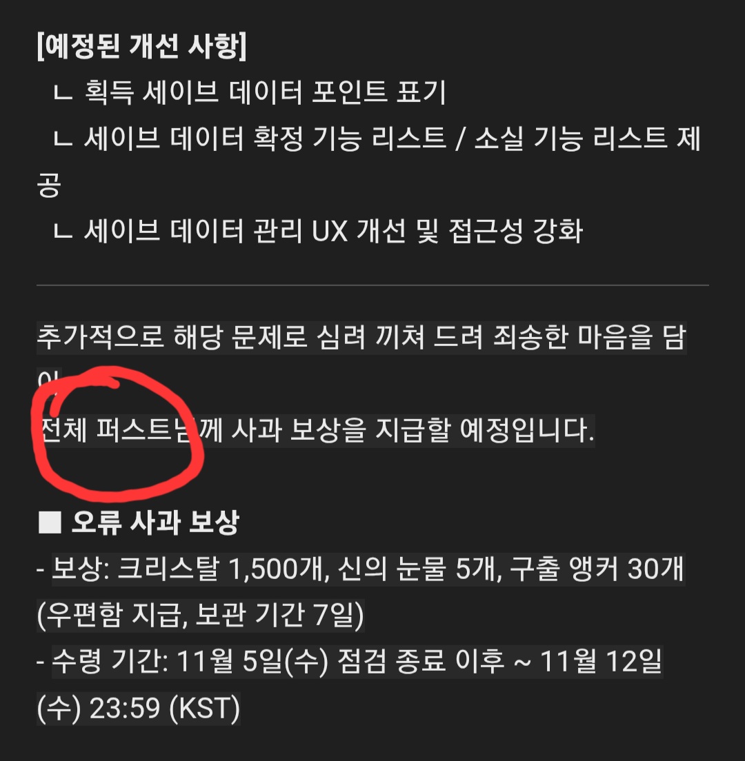 버그 안쓴애들은 쥐똥만큼 보상준다는거 맞냐?