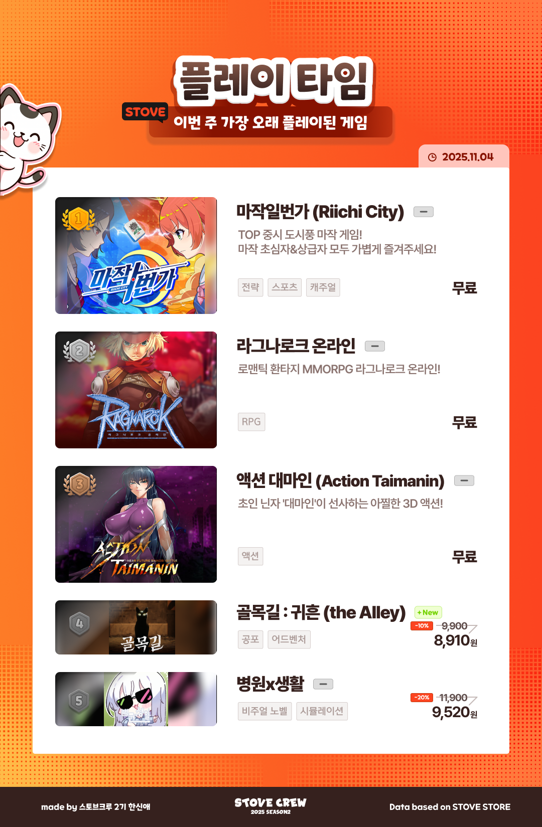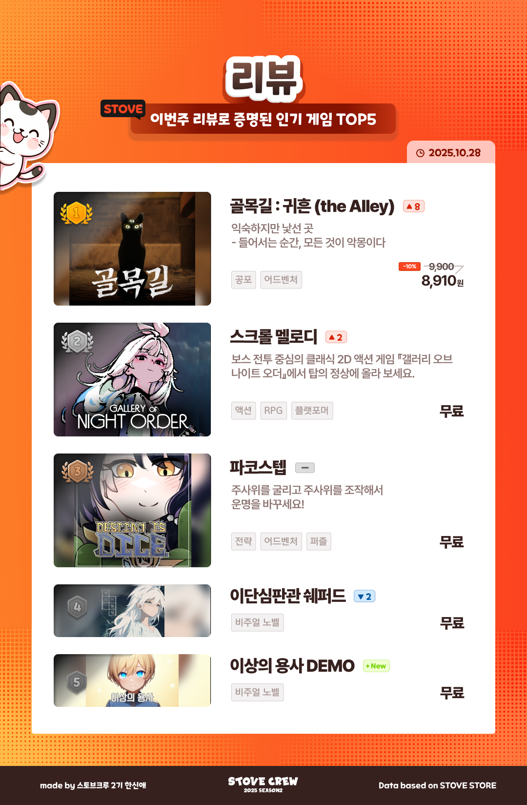 🧡 이전 주간 스토브스토어 랭킹도 함께 확인해 보세요 🧡