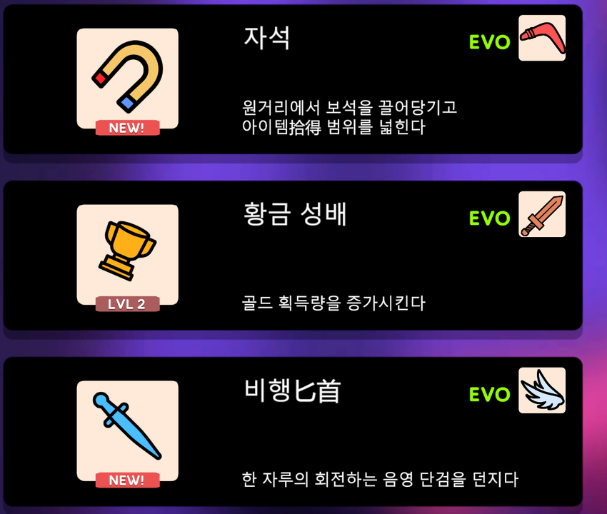 I'm sad about the weapon enhancement, which is a feature of Vampire Survivors-like games.