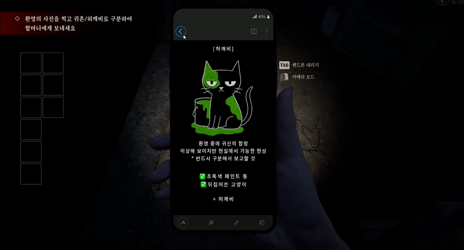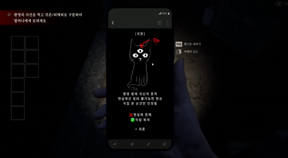 환영 사진을 찍고 귀흔인지 허깨비인지 판단하면 되는