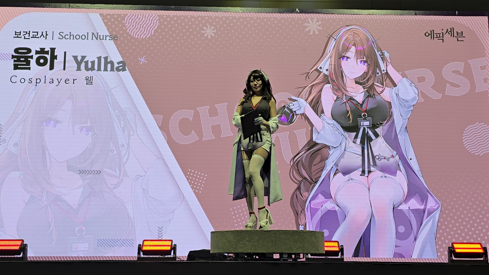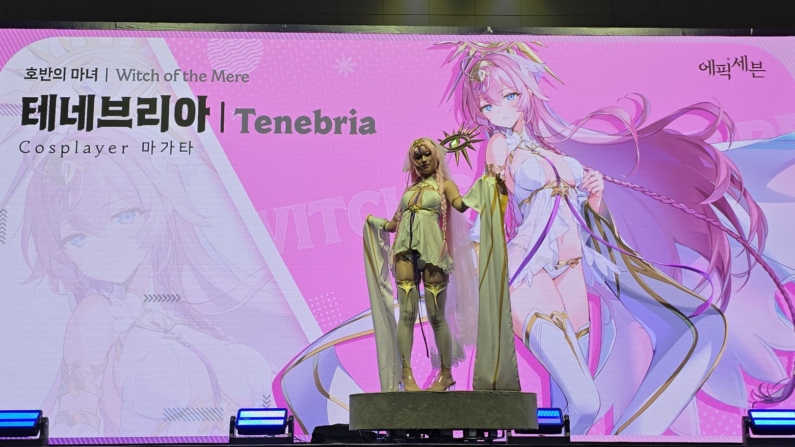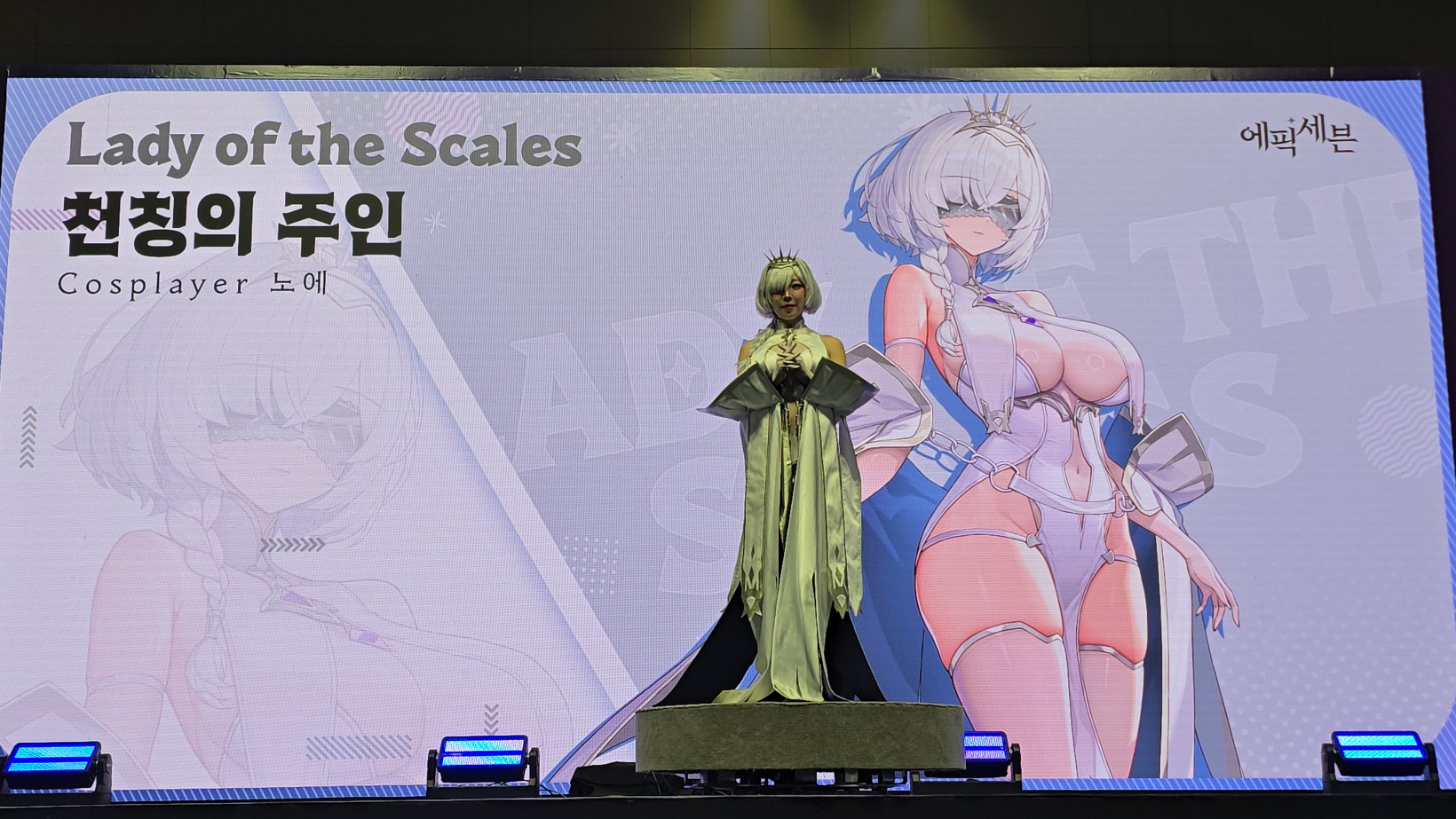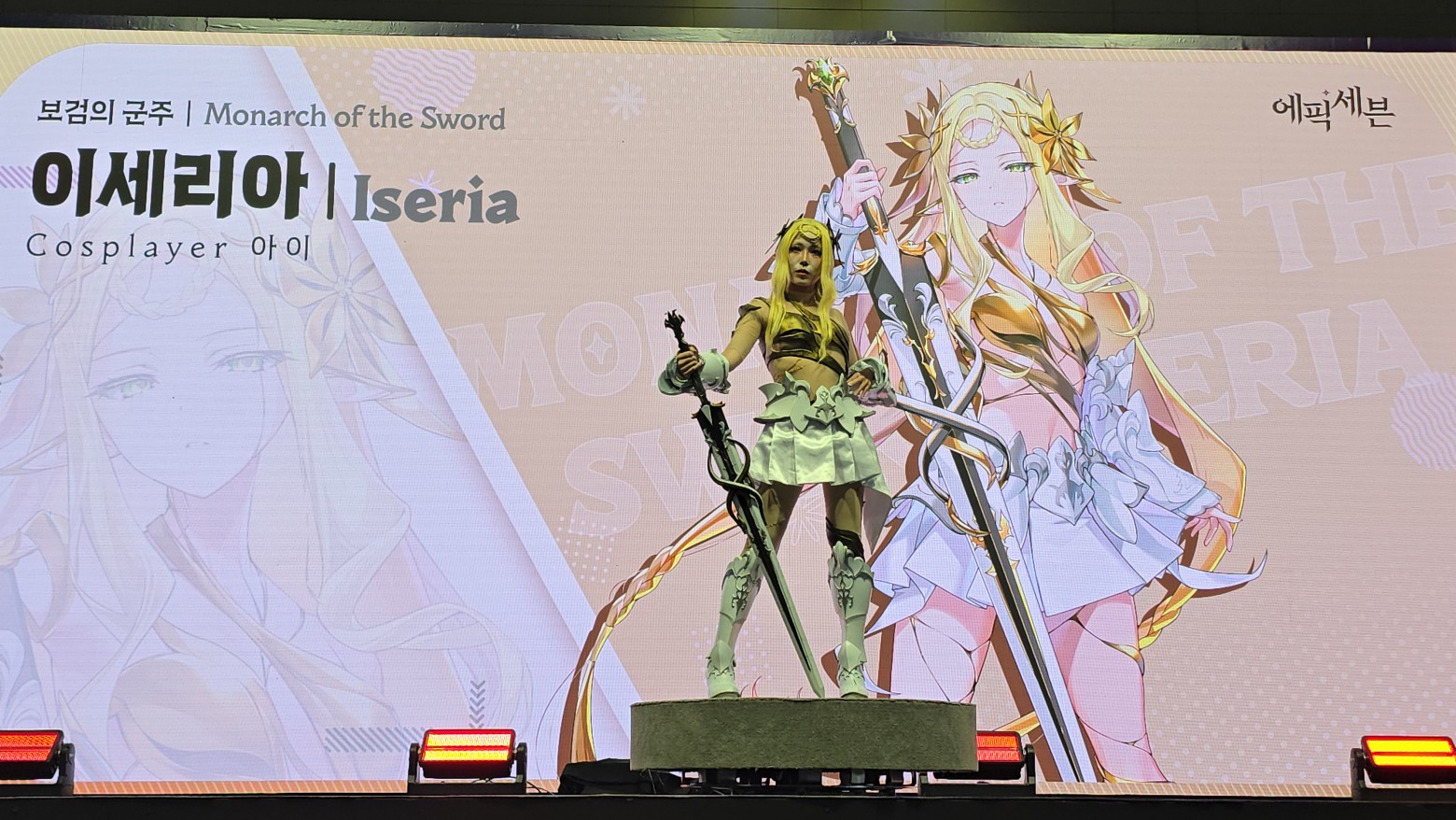 에픽세븐 부스 들어가는 입구 앞에서 코스어 분들이 멋지게 포즈 잡아주셔서 사진 찍었습니다.