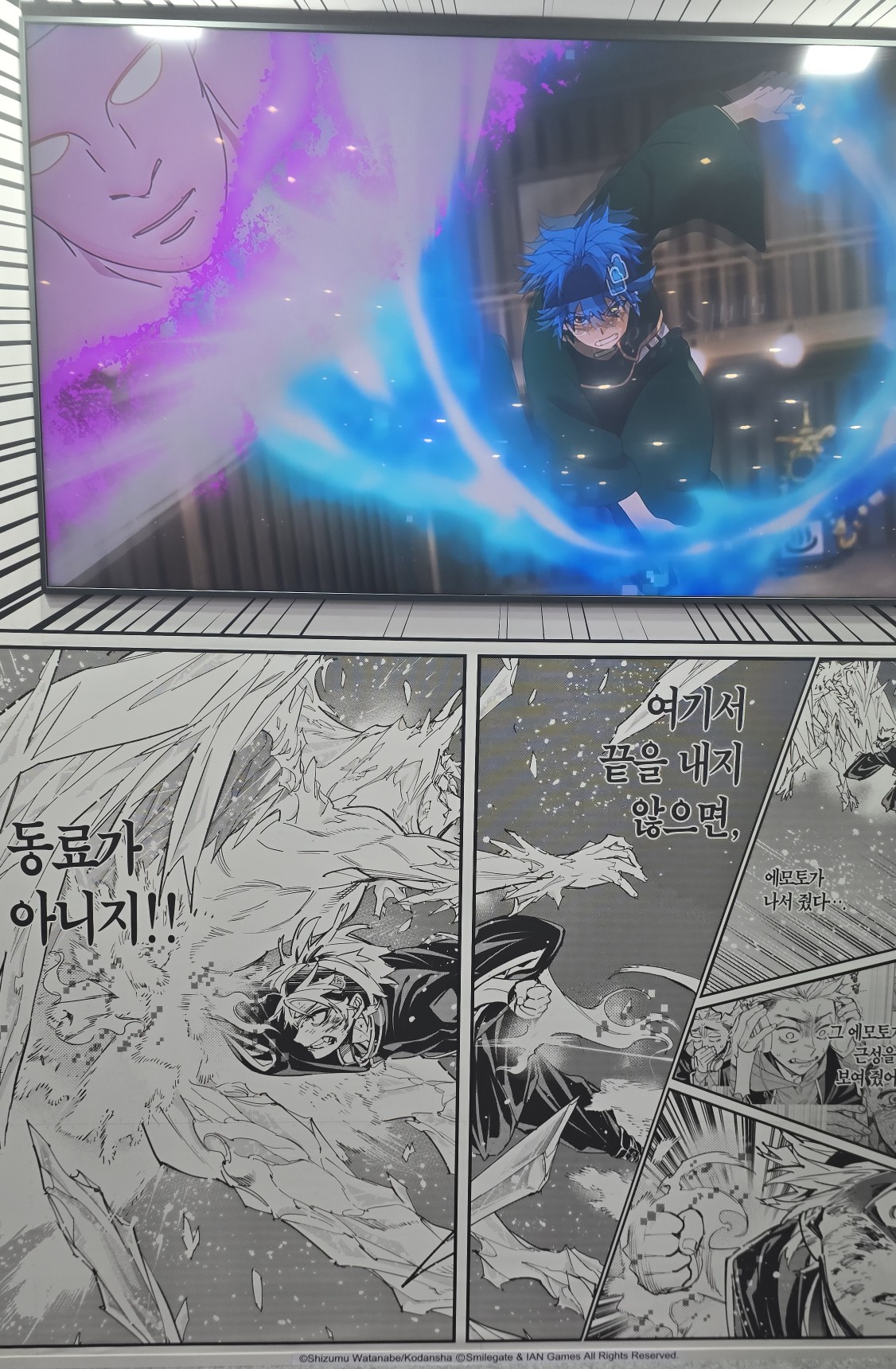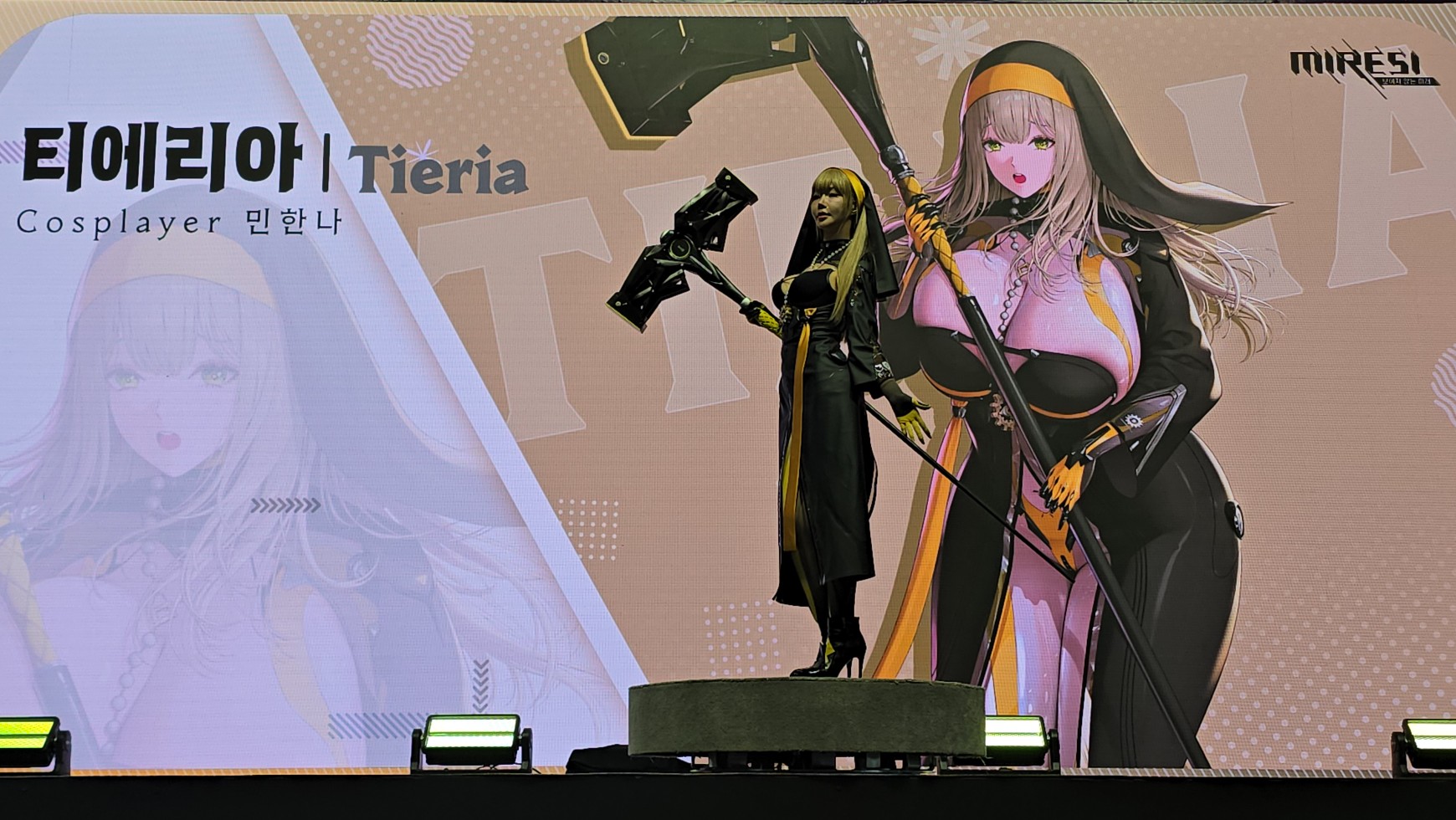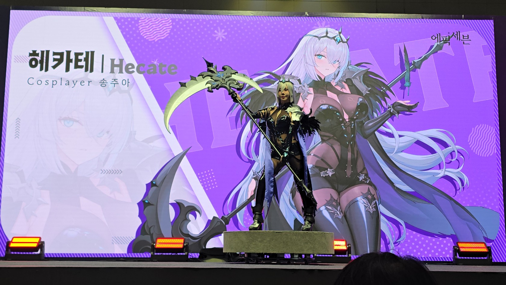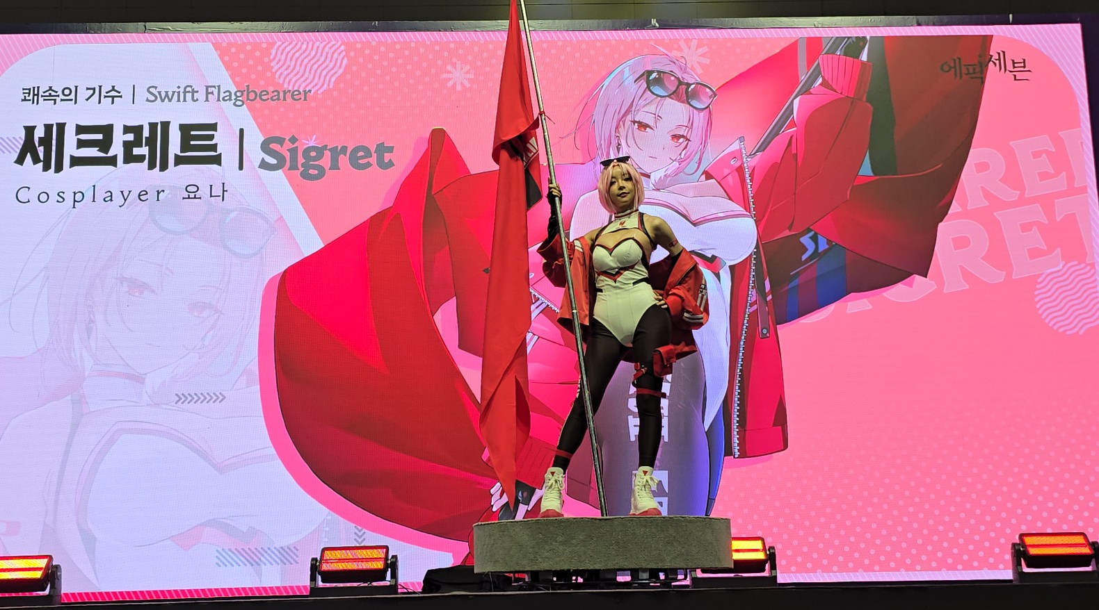 에픽세븐 부스 들어가는 입구 앞에서 코스어 분들이 멋지게 포즈 잡아주셔서 사진 찍었습니다.