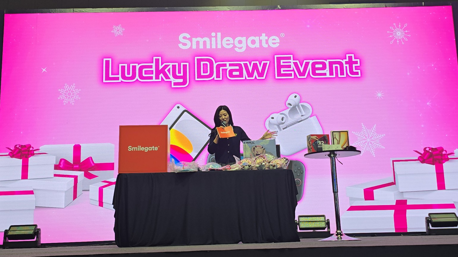 1등 아이패드 1명 , 2등 닌텐도 스위치2 1명 , 3등 에어팟 2명 , 4등 문화상품권 5만원권 , 그외에 각종 굿즈 뽑기를 했습니다.
