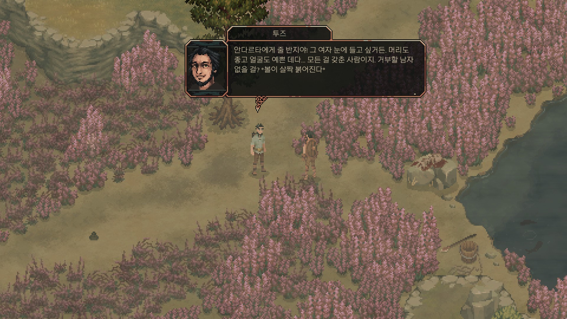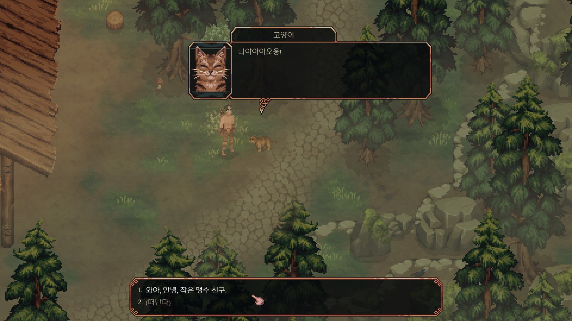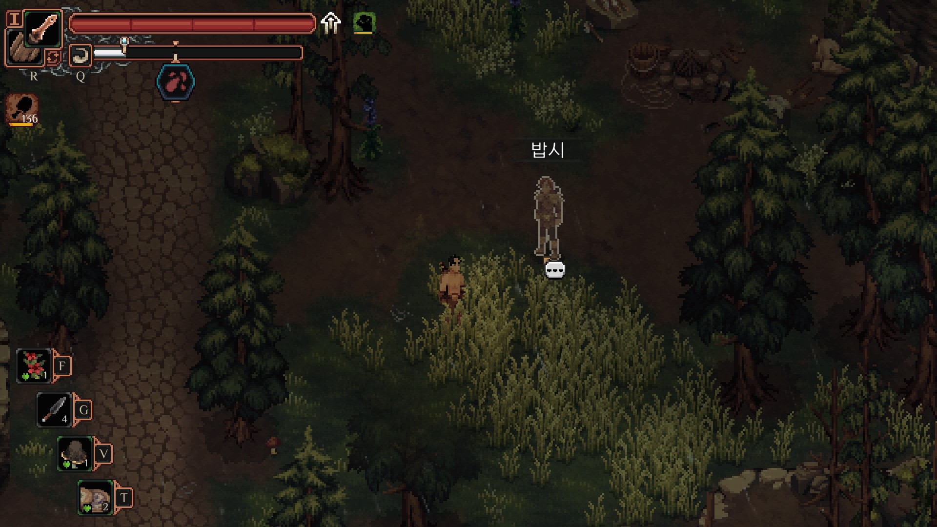 <맷돼지는 주인공을 쫒아오는데 밥시쪽으로 도망가면 같이 싸워줍니다.>