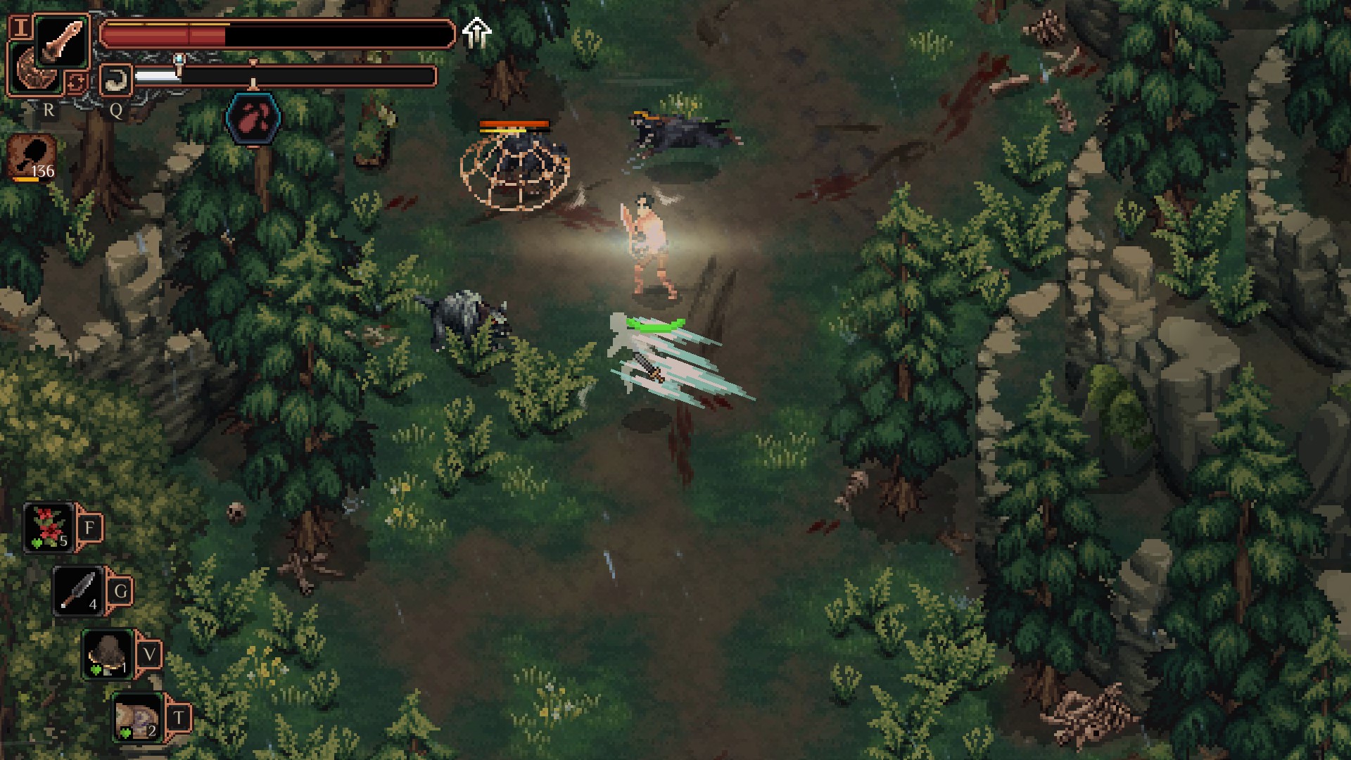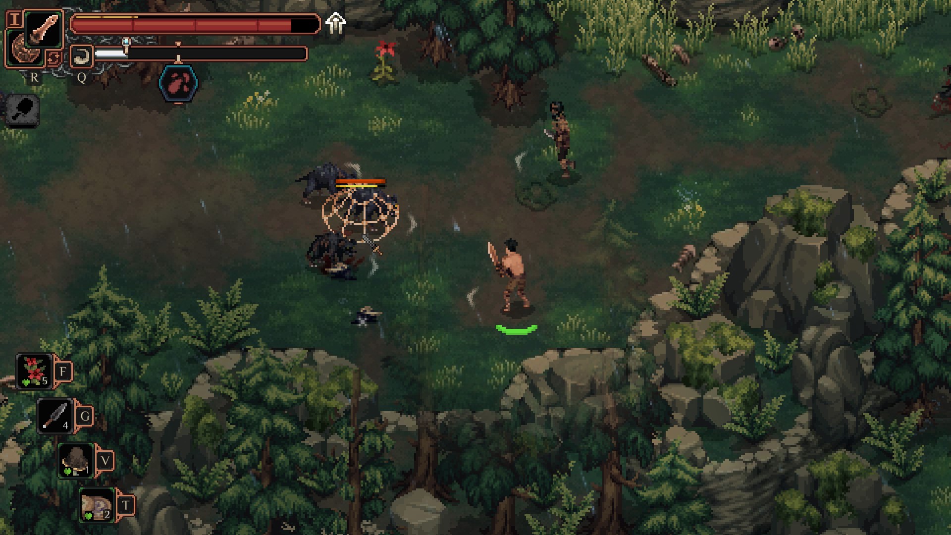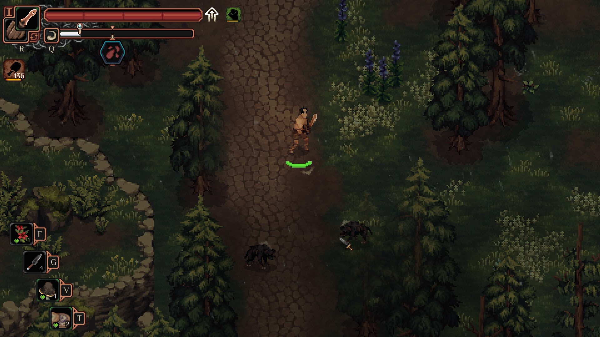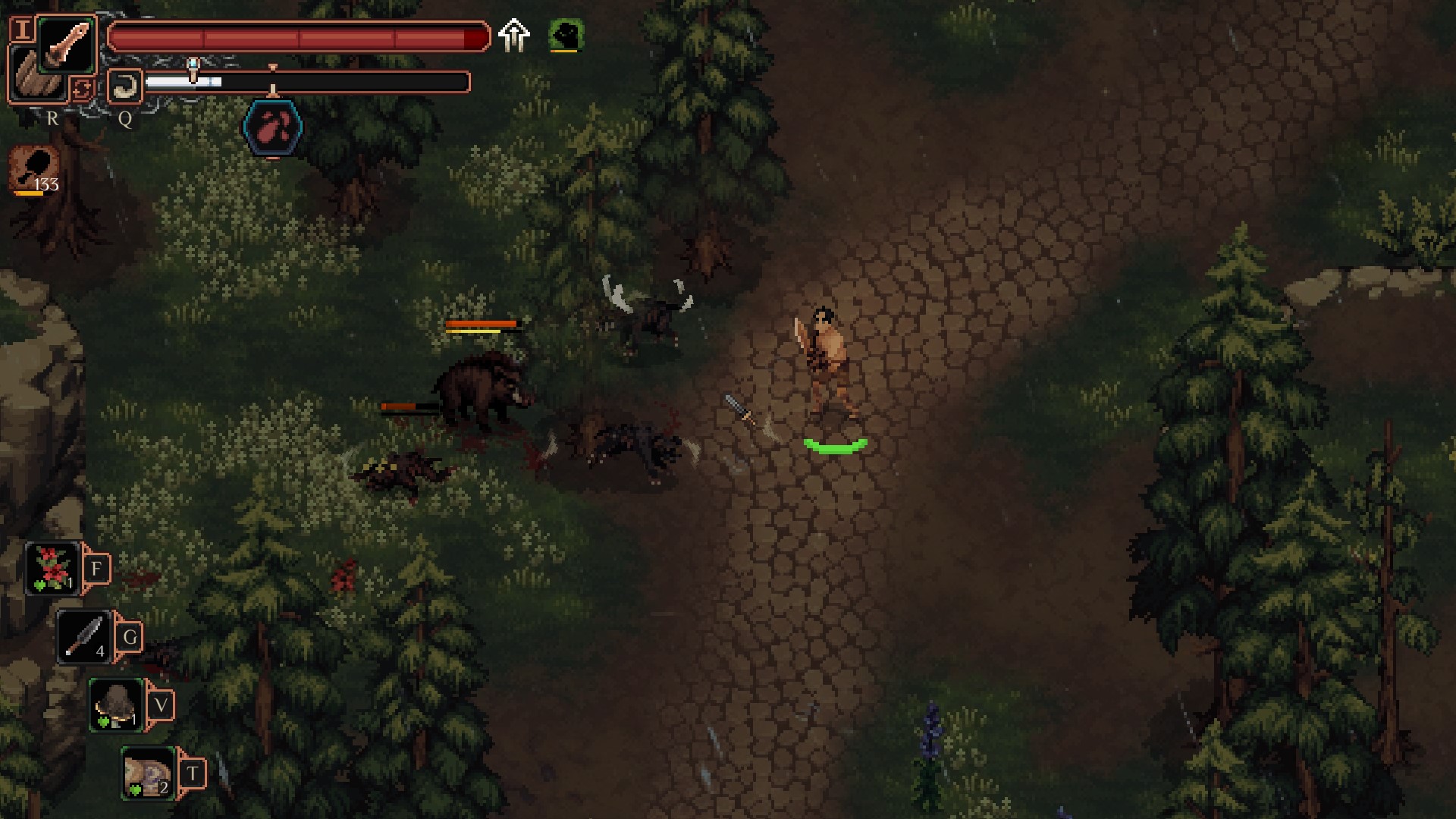 <맷돼지는 주인공을 쫒아오는데 밥시쪽으로 도망가면 같이 싸워줍니다.>