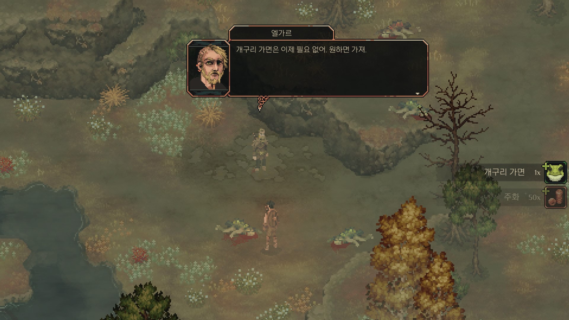 <주인공에게 개구리 가면을 주고 퀘스트가 끝납니다.>