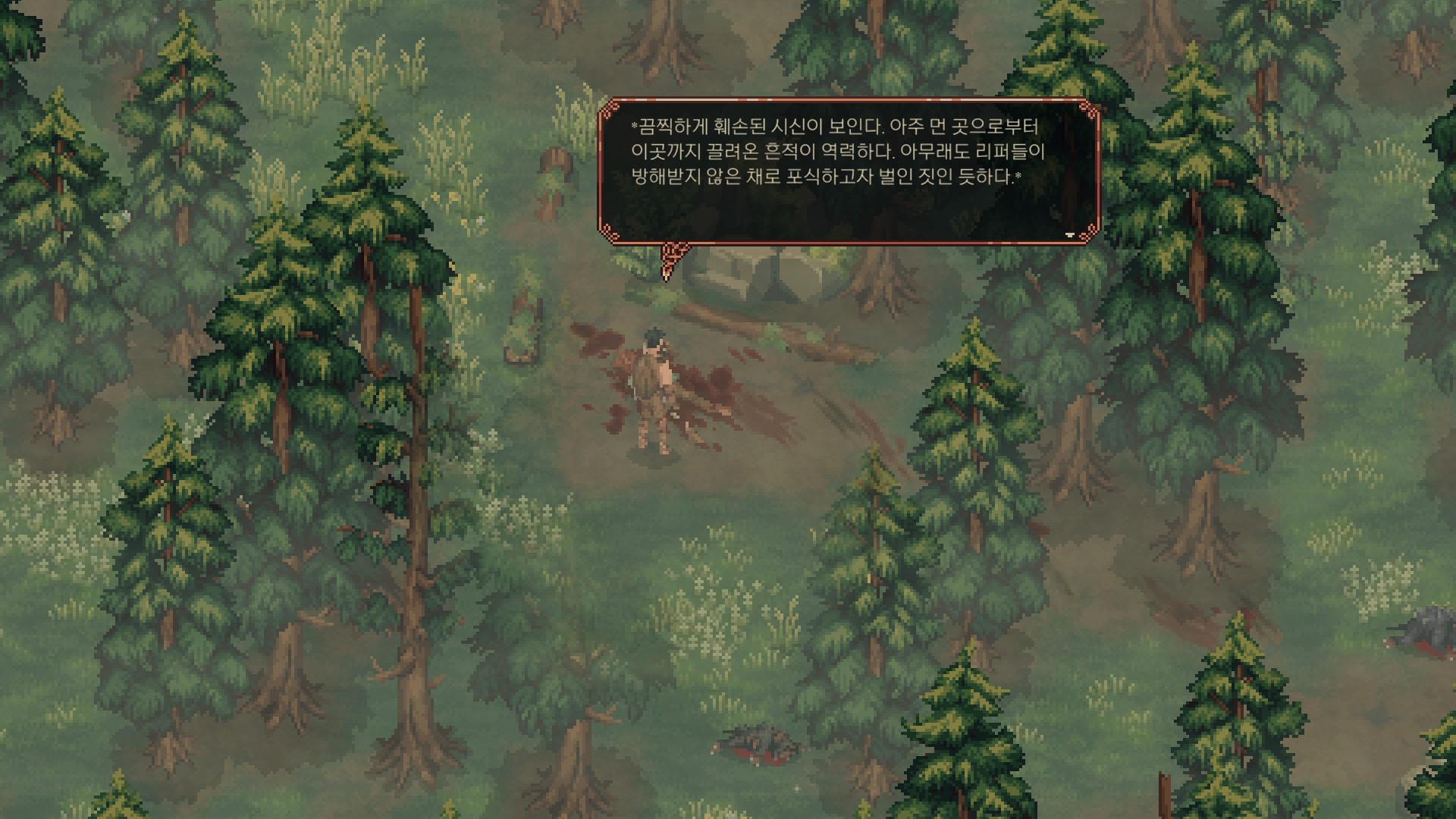 <여관 위쪽으로 가면 싸움 흔적을 발견할 수 있습니다.>