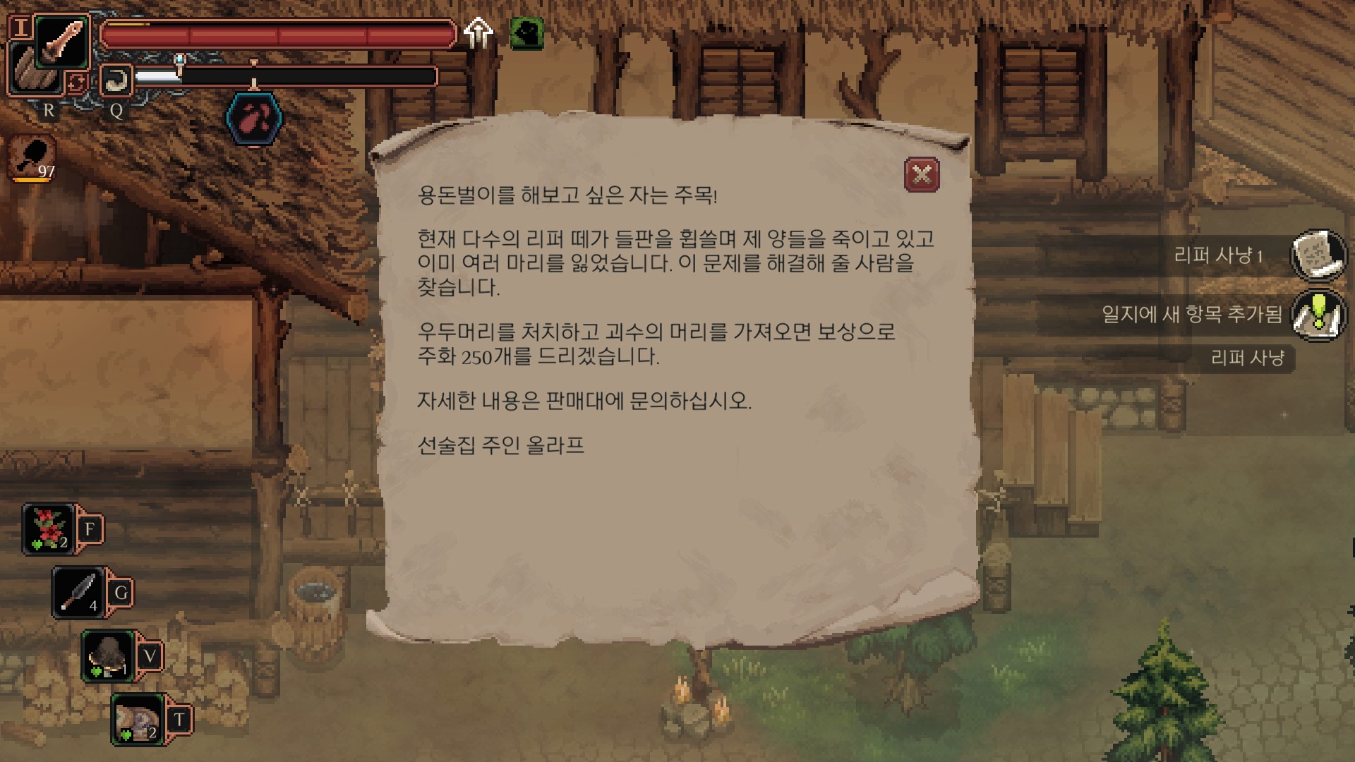<리퍼 사냥과 양 먹이 주기 퀘스트를 완료한 뒤>