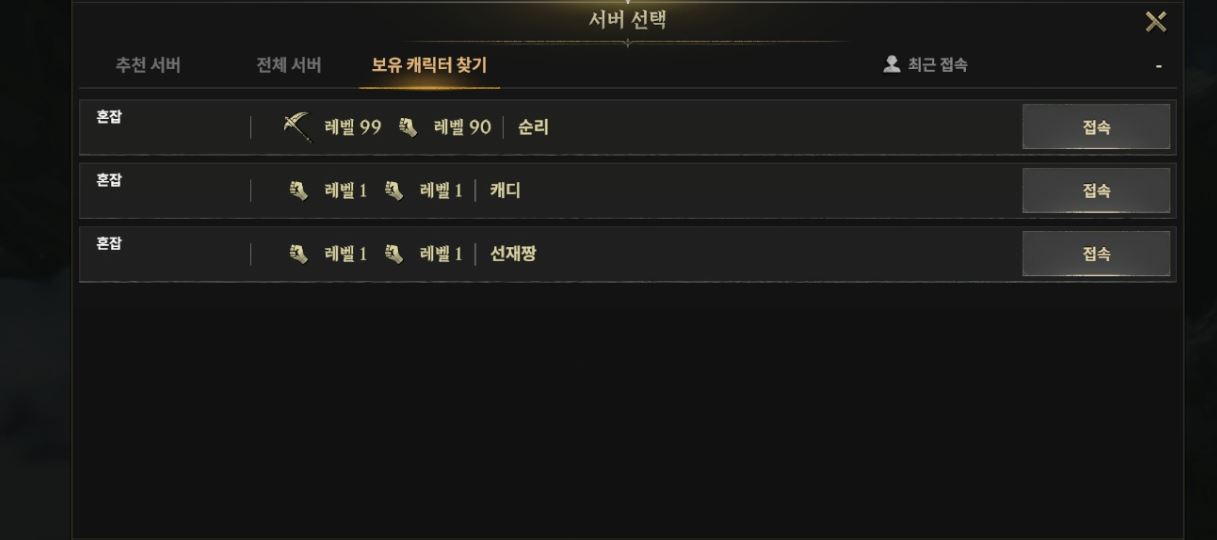 레벨 99렙 접속 누르면