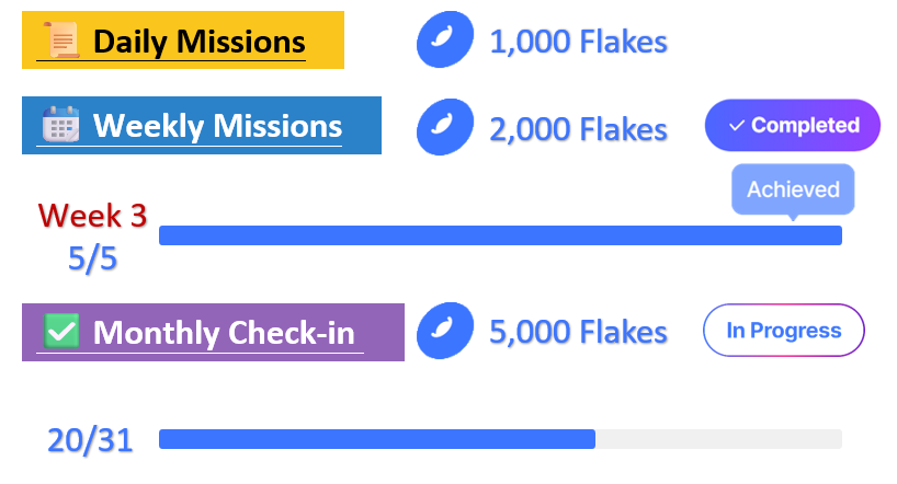 - Missions are reset every week at the same time on all servers, and the mission and reward composition are the same every week.
