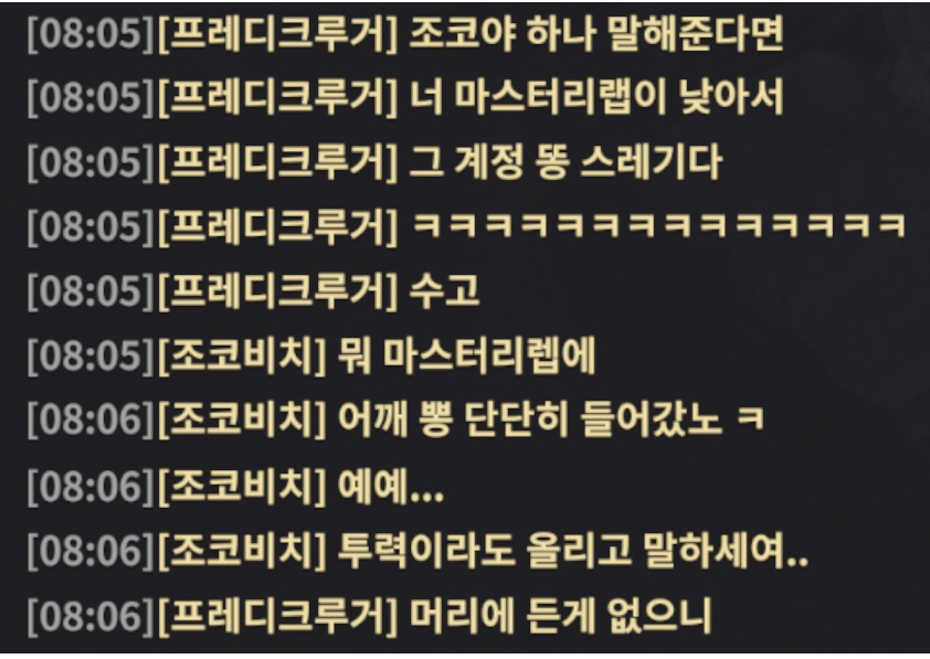 저거만 봐서는 둘다 쓰레기인데 17만투력이 저런말을 하는 시대가 왔다는게 뇌진탕올거같네 ㅋㅋㅋ