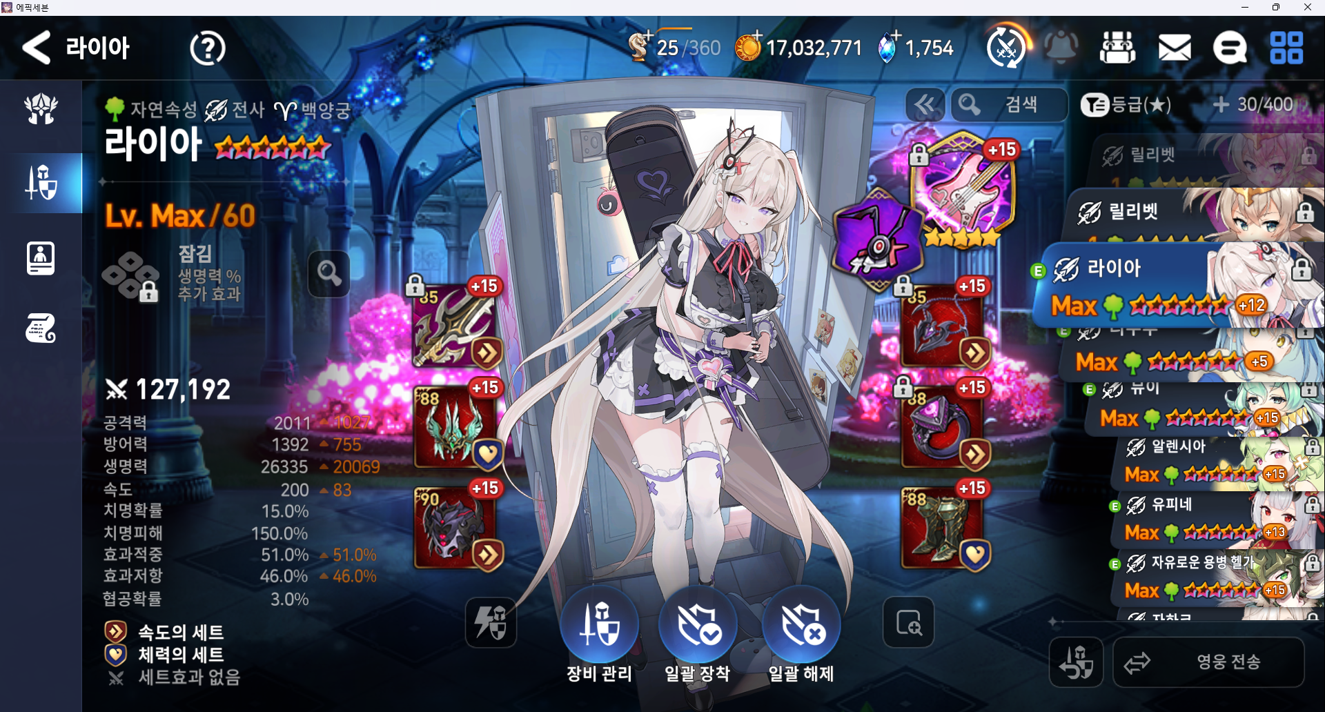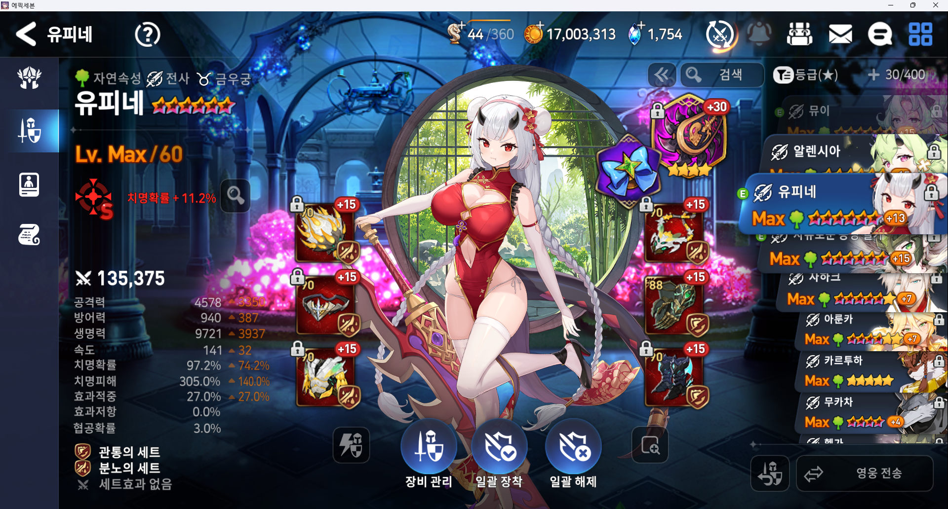 벤시 원펀용 "이었던것" 유피네 (분관 세팅하고 방깎넣었을떄 잡을 수 있는 딜만 나오면 됨, 지절 대체 되는데 지절 쓰는게 스팩적으로 좋음)
