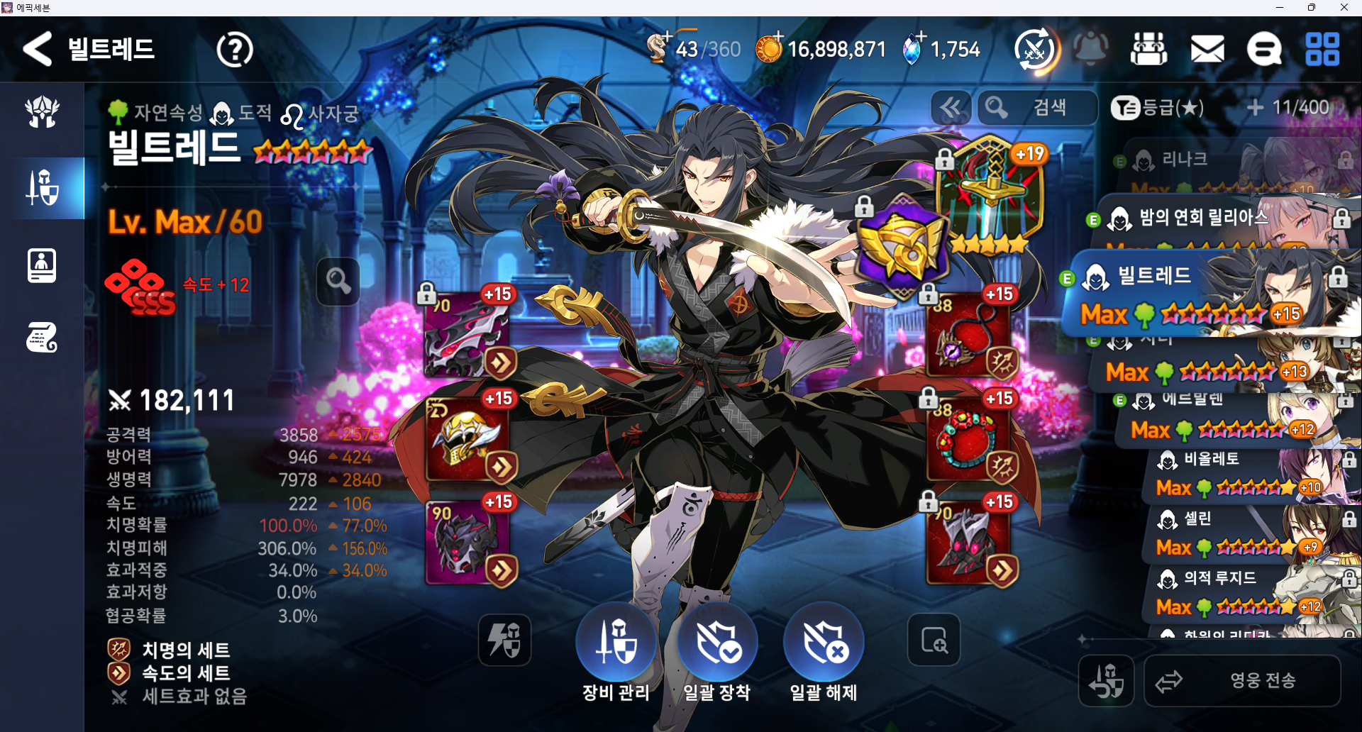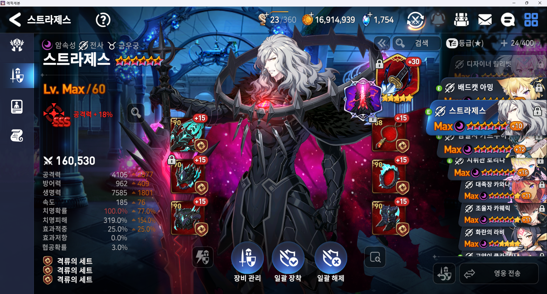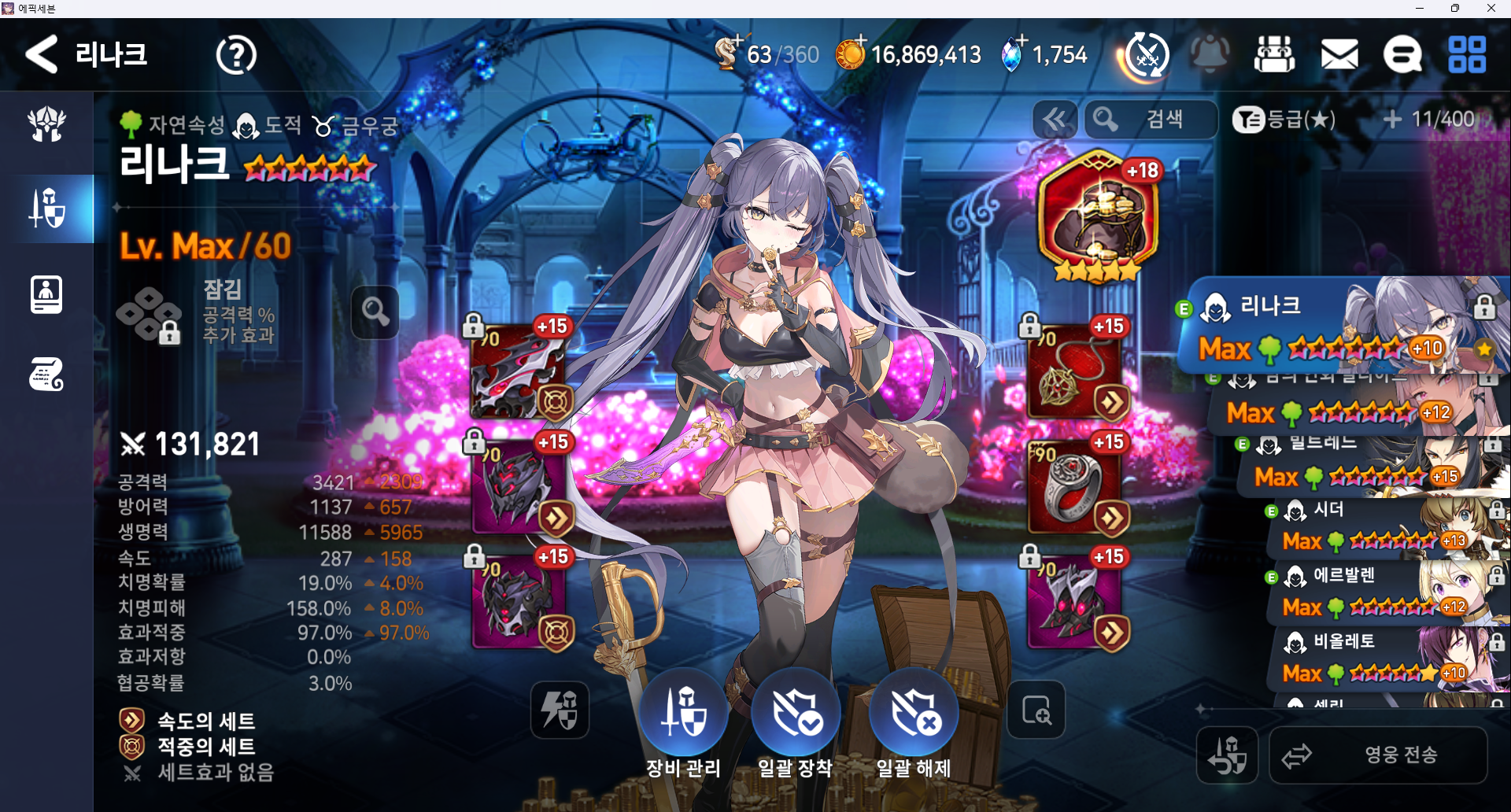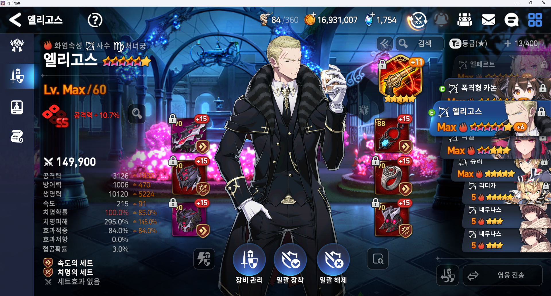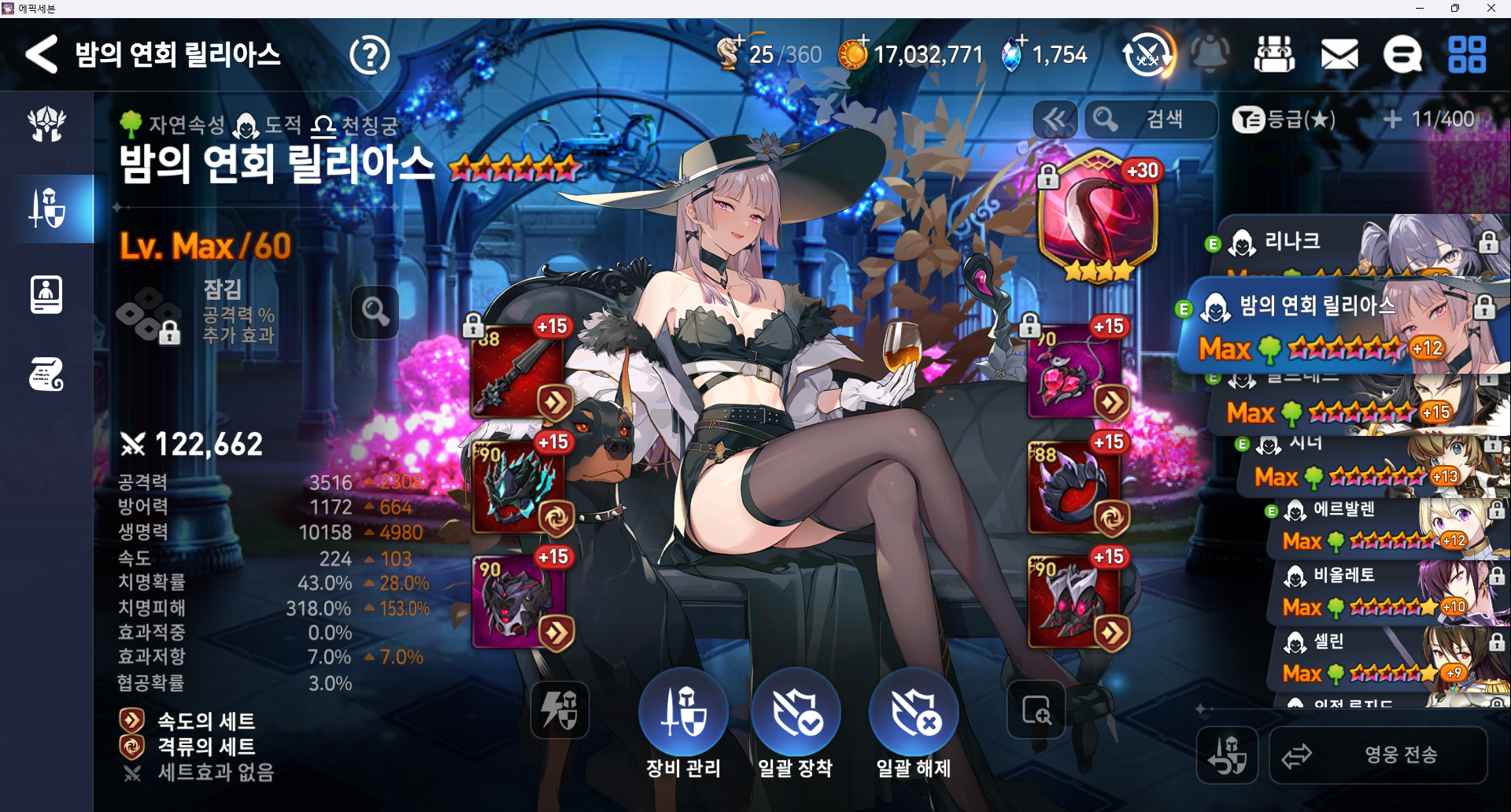 방깎요원 1 엘리고스 (이세리아 대체 가능, 아티 아무 딜러용 대체 가능, 효적이랑 속도만 신경 써주면 됨)