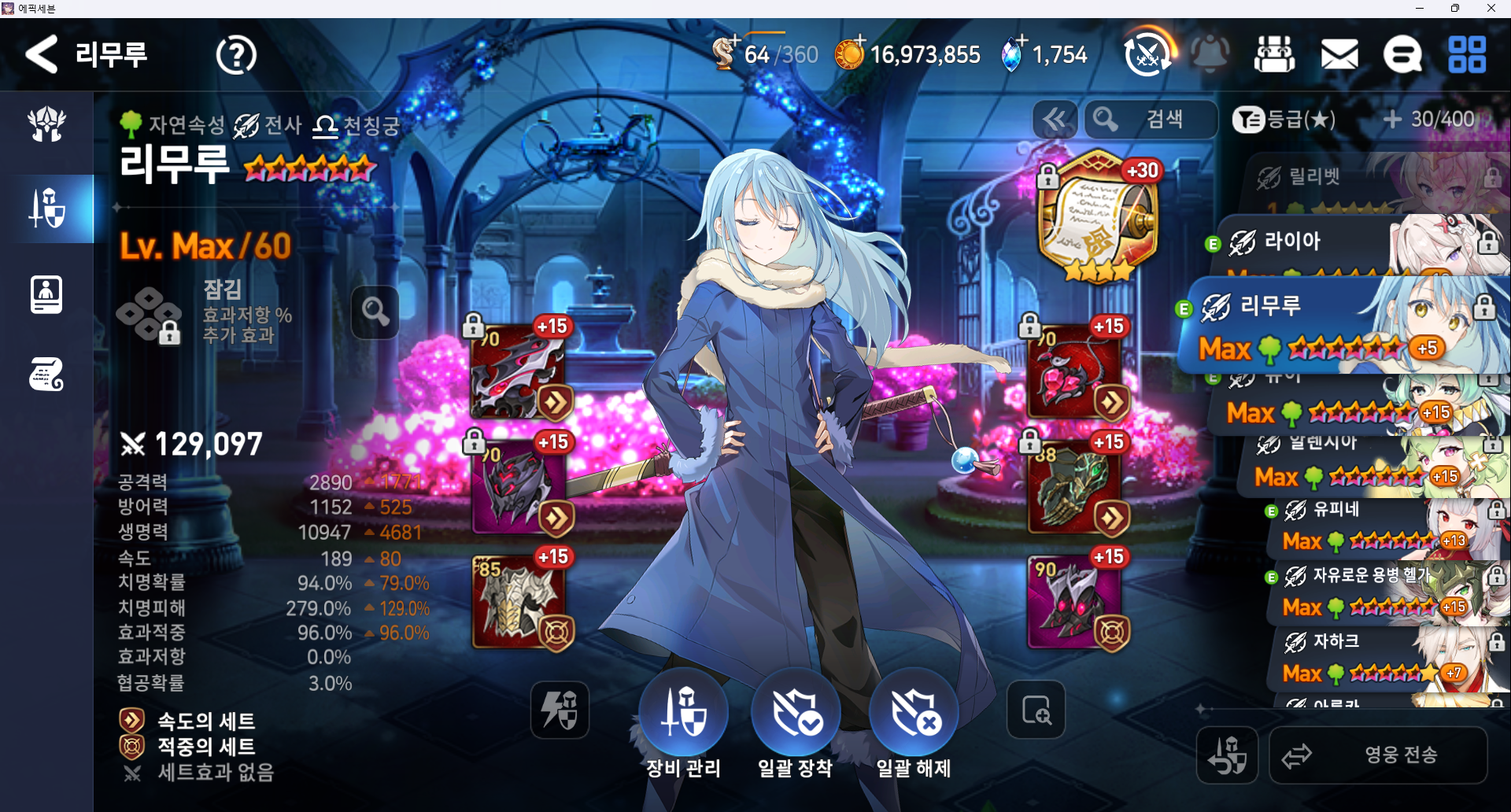 방깎요원 2 리무르 (단일 방깎 100퍼에 역속성 효과 안받는 모든 애들 채용 가능, 본인이 전생슬 좋아해서 넣은거임 대체 많음)