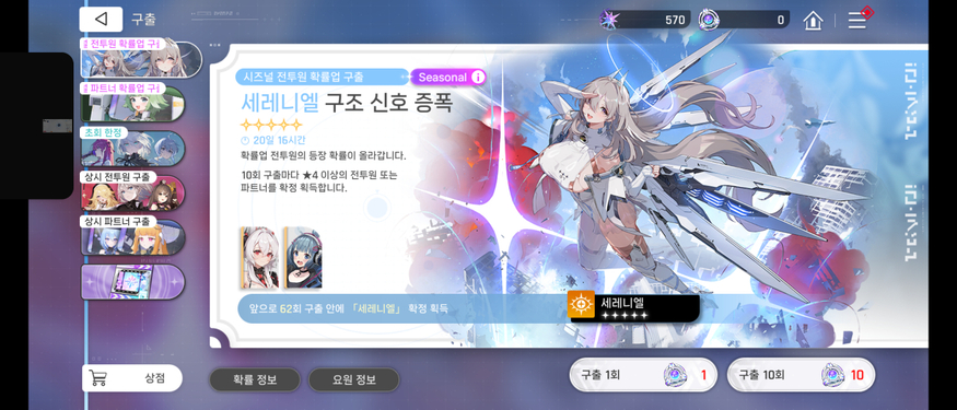 천정 3번 쳤는데, 확정 픽업이 아닌 건지 1번만 세레니엘이 나왔고