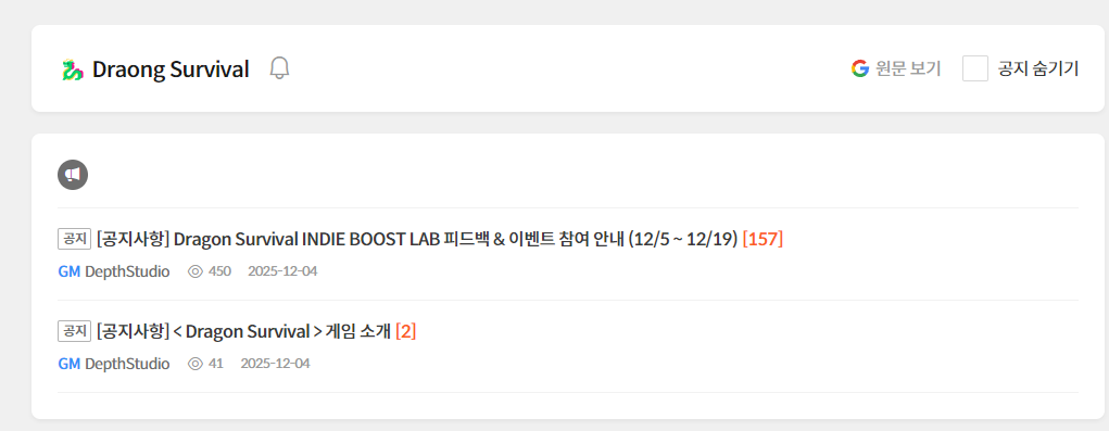 Dragon Survival 인데 게시판 이름은 Draong Survival로 되어있습니다.