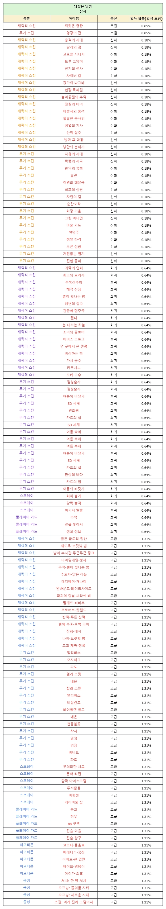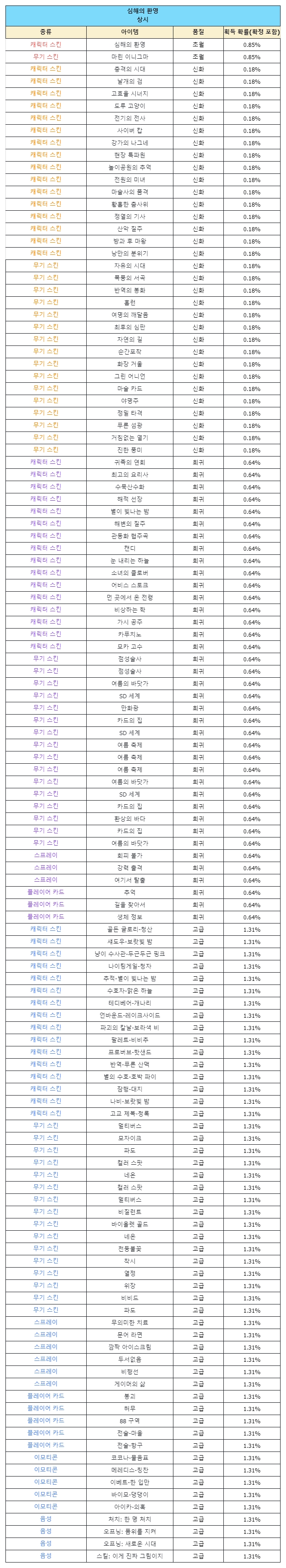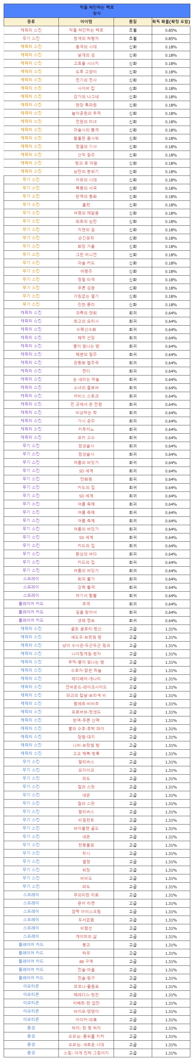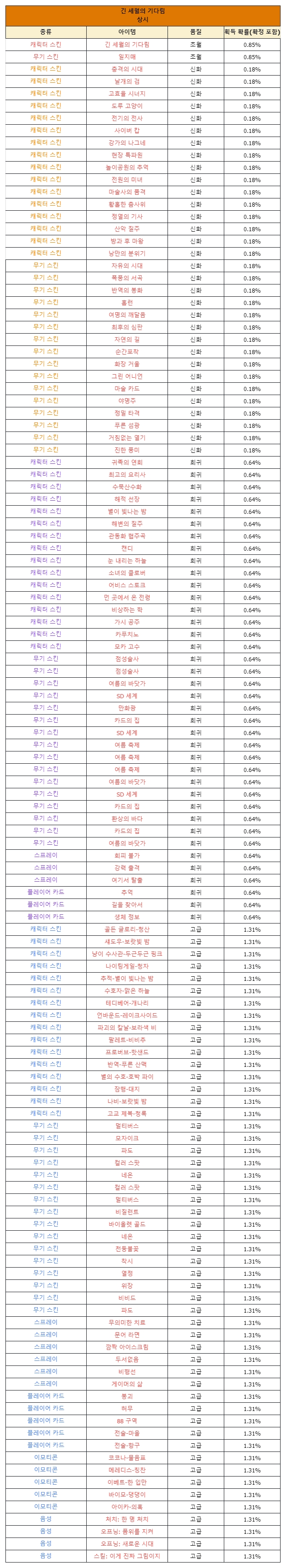 - The types and probabilities of items that can be obtained when exchanging ‘Knights Training Support Box’, which has no limit on the number of purchases, are as follows.