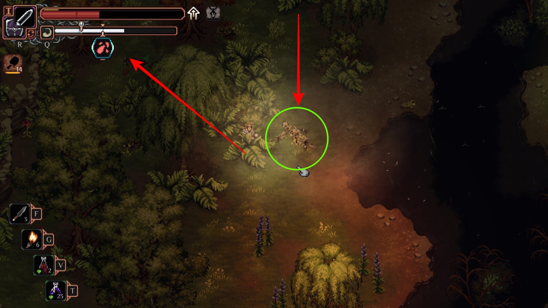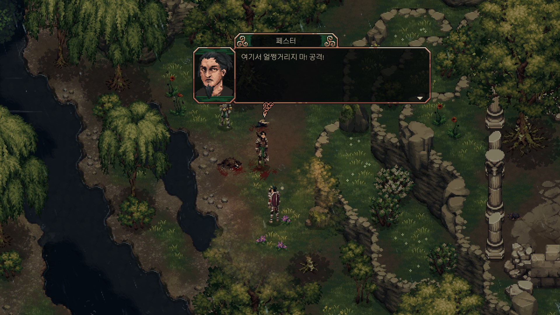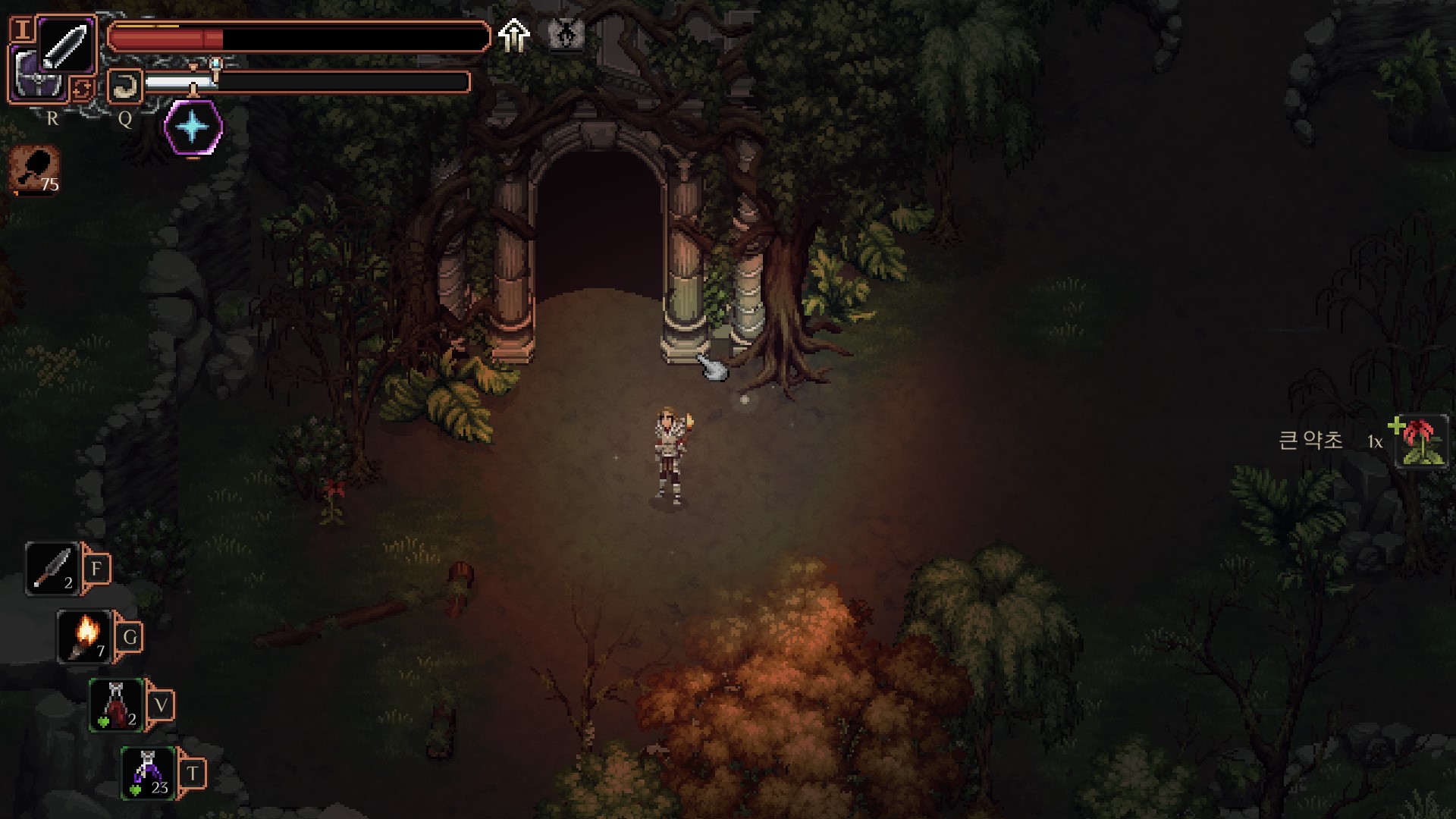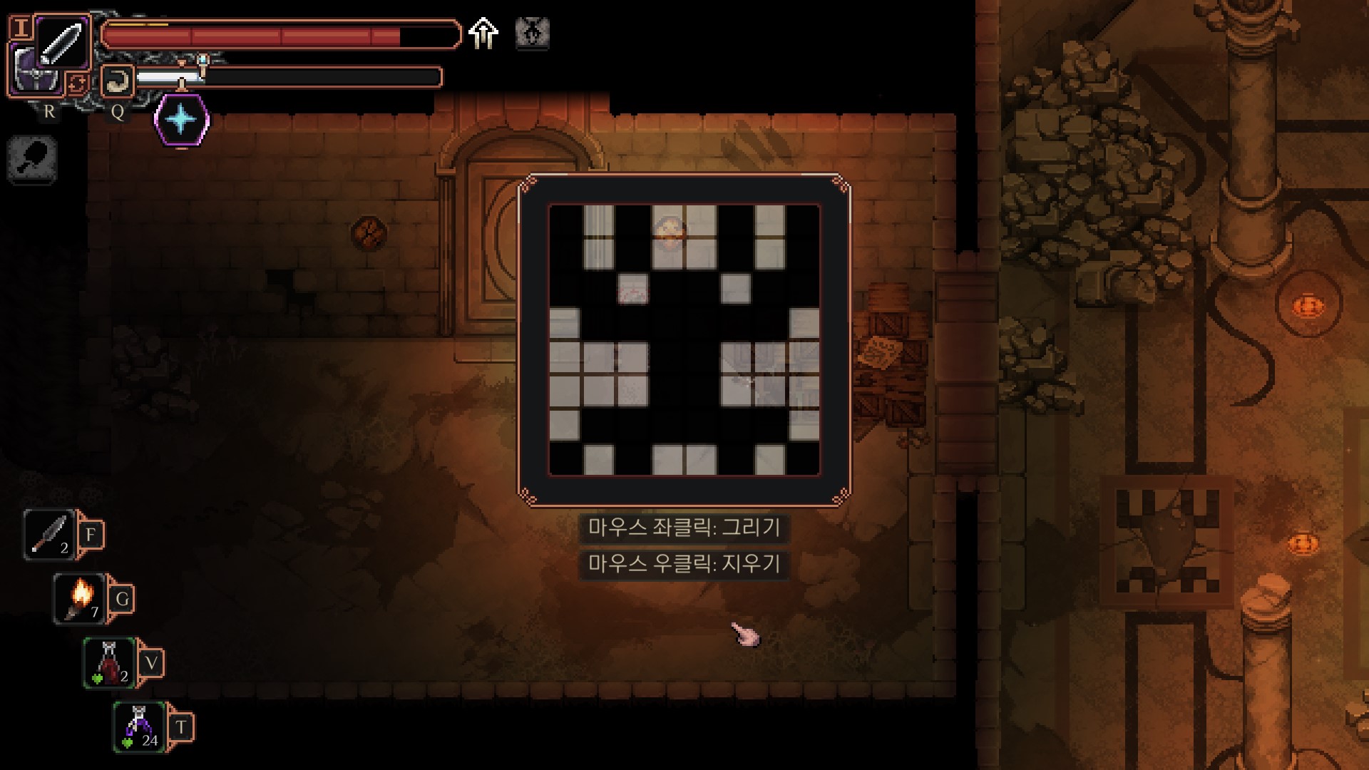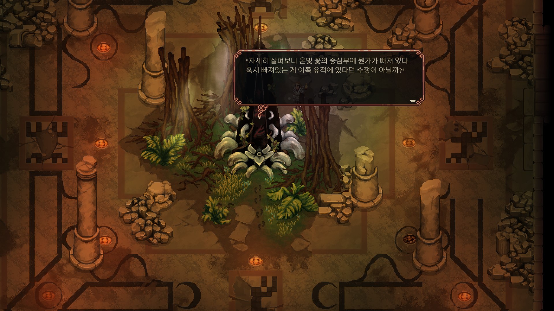<이끼 낀 해골을 기준으로 화살표를 따라야 하는데>