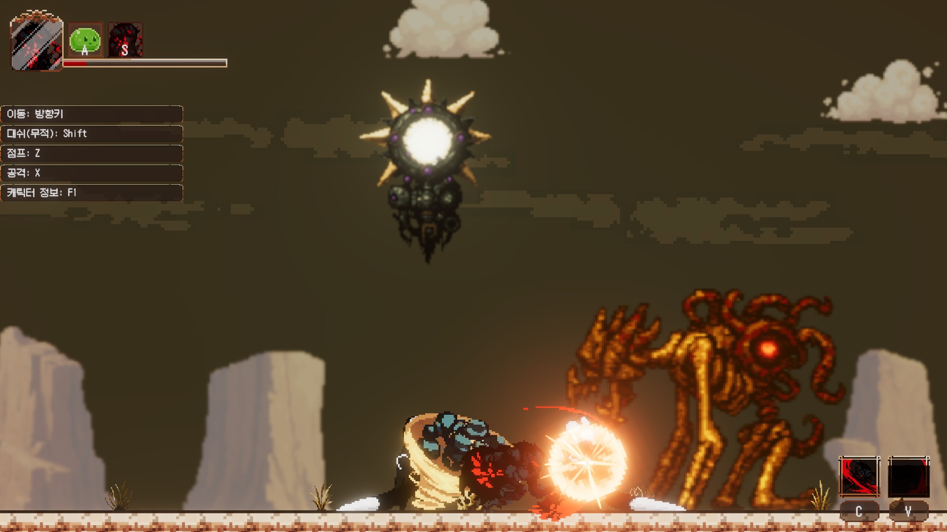 메트로배니아+고난이도+패링을 섞은 게임이라 난이도가 날뛰고 있었거든요.