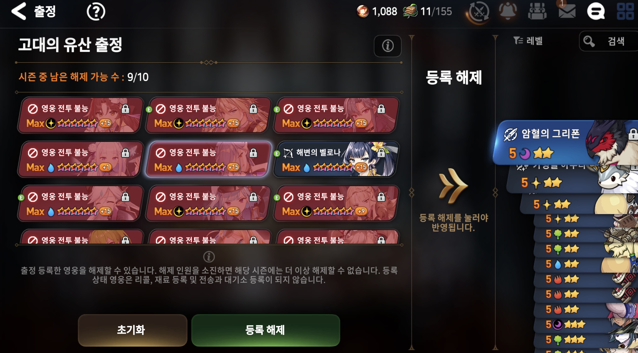 시즌 중 남은 해제 가능 영웅 수는 10명입니다.