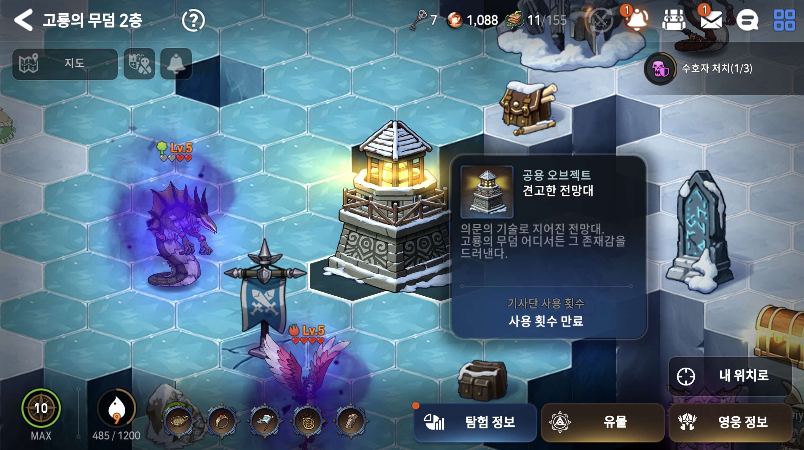 그래서 초반에 레벨을 올릴 수 있는 오브젝트나 기사단 텐트, 이동효율성 증가 유물을 적극 활용하는게 좋습니다.