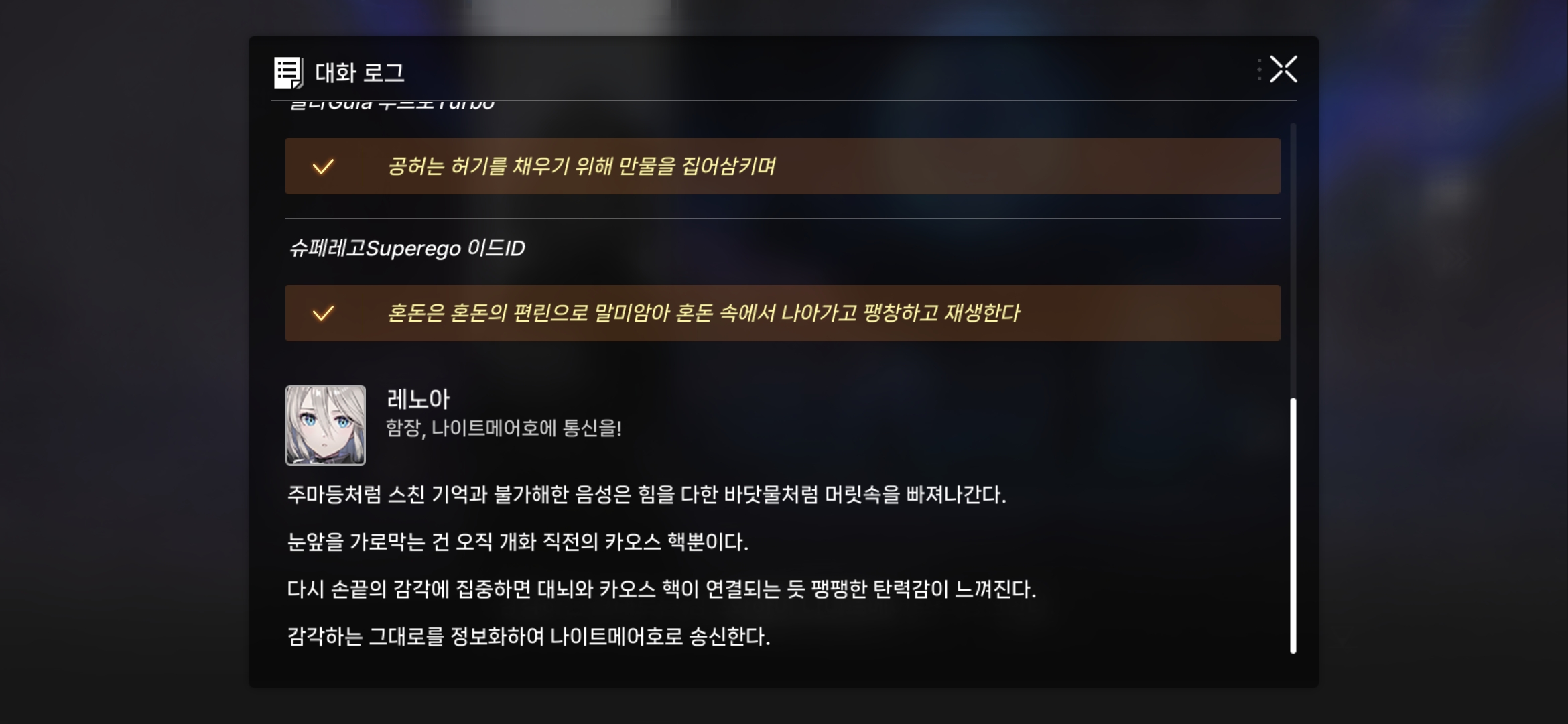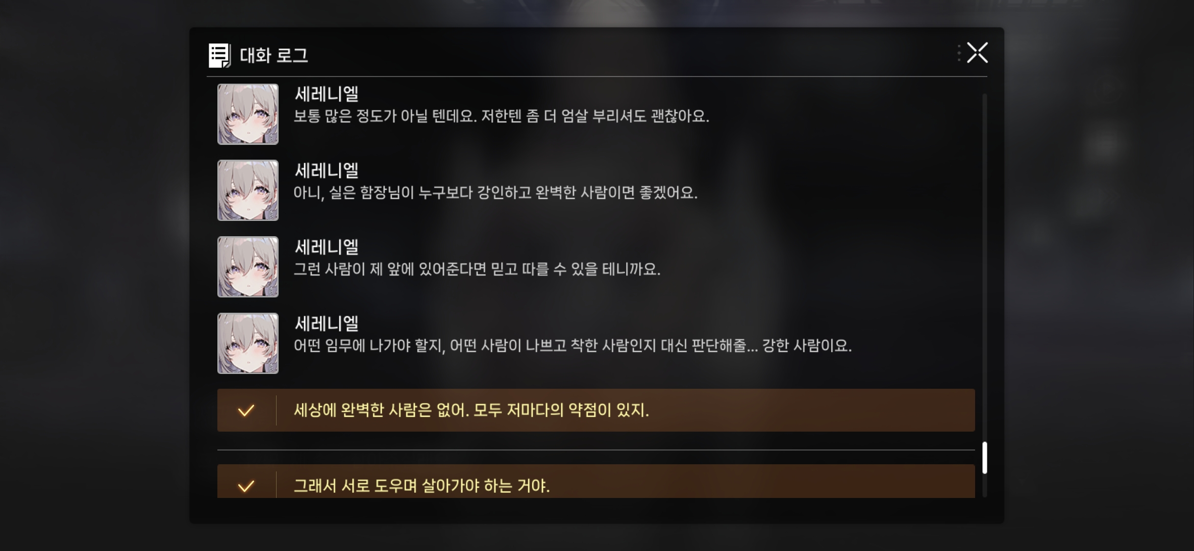 세레니엘의 독백은 이런 요소가 현재 카제나에 부족했음