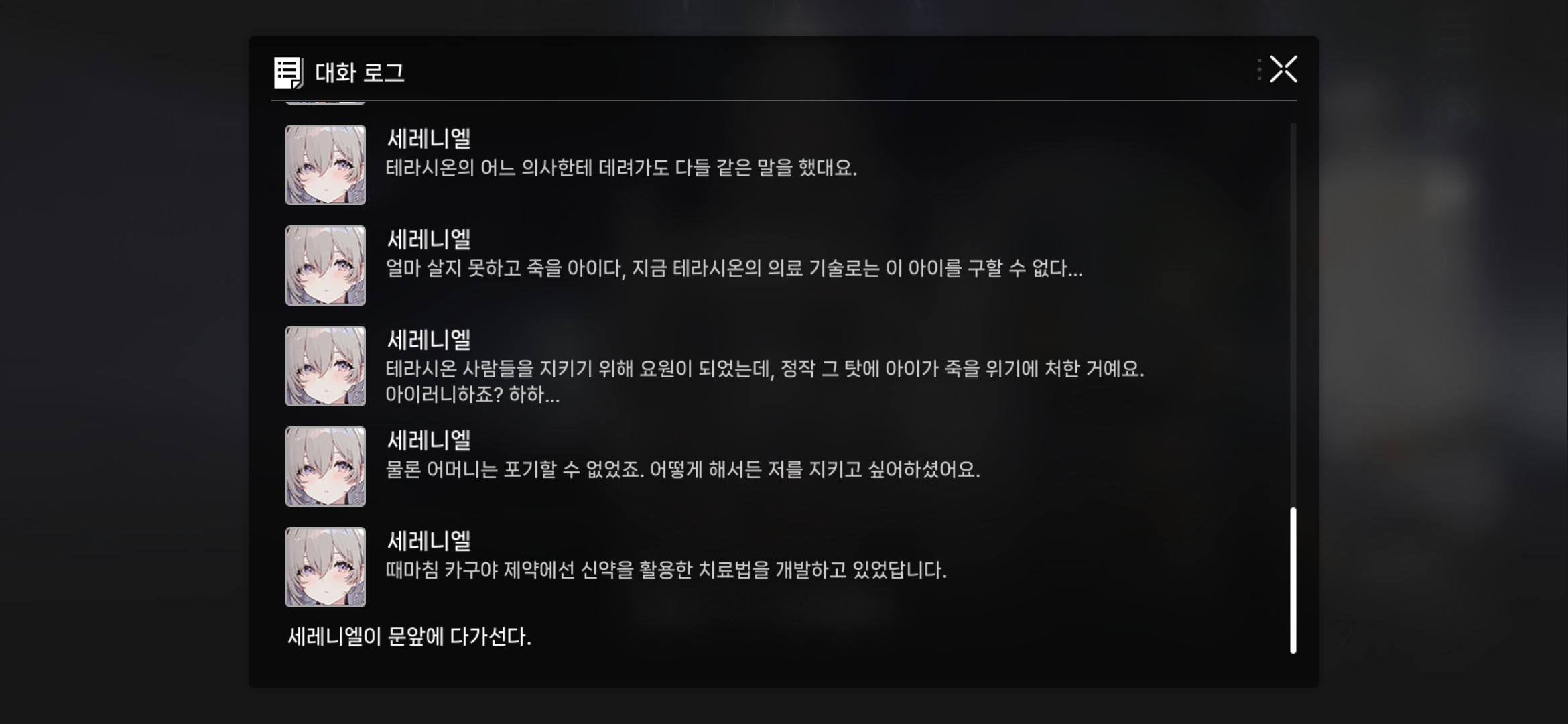 갑자기 세레니엘이 이곳에서의 실험체였단 설정이 나오기 시작함