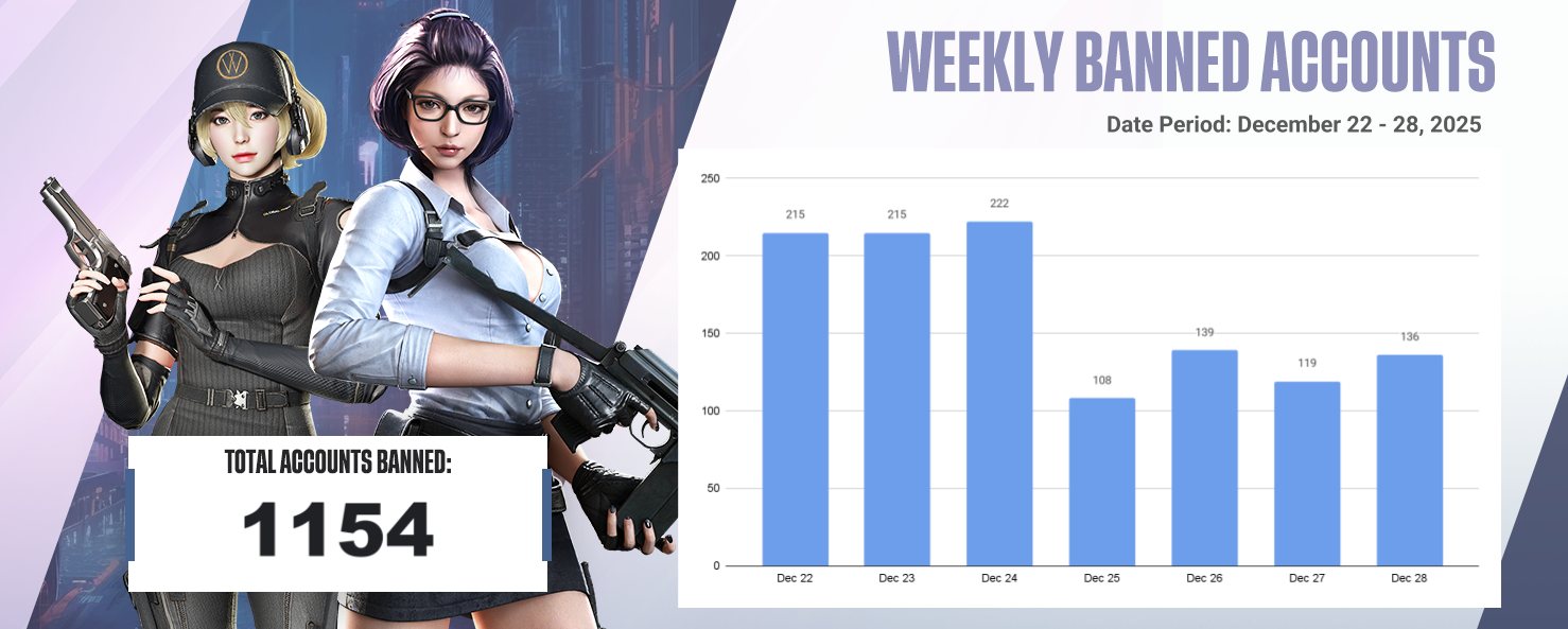 For this week, a total of 1,154 users were blocked due to usage of third party programs.At the moment, only a partial IGNS of the banned users is being shared. We’re preparing to release the full list soon for greater transparency—thank you for your patience!