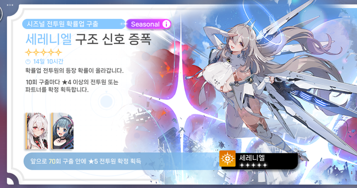 이번 회차에 5성 전투원 확정 획득 or 세레니얼 확정획득 이라고