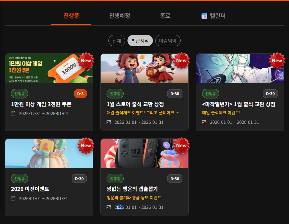 2026년이 되고서 새로운 이벤트들이 생겼습니다.