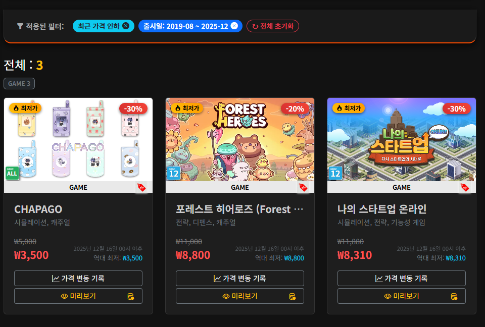 좀 전에 가격을 다시 불러오고 있는데. 가격 인하 게임들이 있더군요.