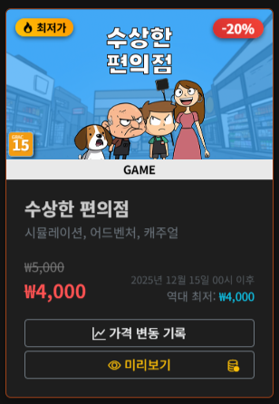 게임정보확인 눌러서 가격보고 가격*25플레이크인거 보고 살마음이 싹 사라지더라구요