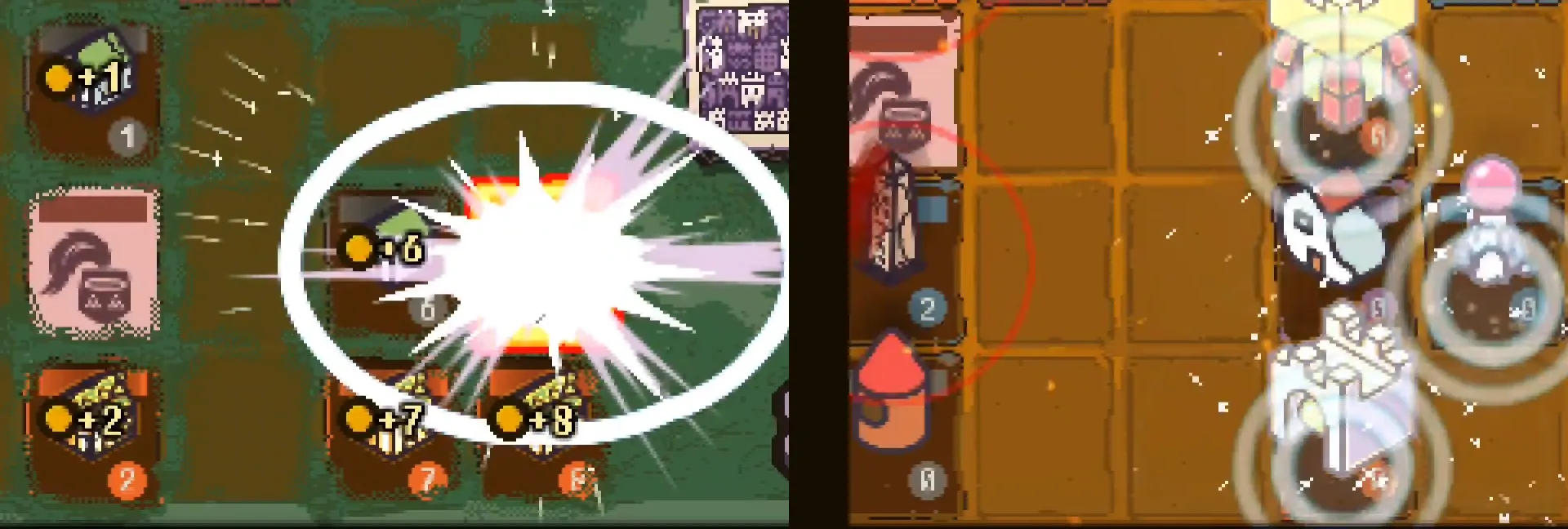 카드들의 각자 고유한 능력과 고유한 애니메이션이라고 생각합니다! Card Colony는 카드 애니메이션이 하나씩 차례대로 순차 재생되면서, 플레이어가 설계한 시너지가 눈앞에서 터지는 손맛을 줘요. 그래서 타워가 연쇄적으로 발동하고 골드가 쌓이는 순간, 타격감과 골드 수급의 희열을 더 크게 느낄 수 있습니다!