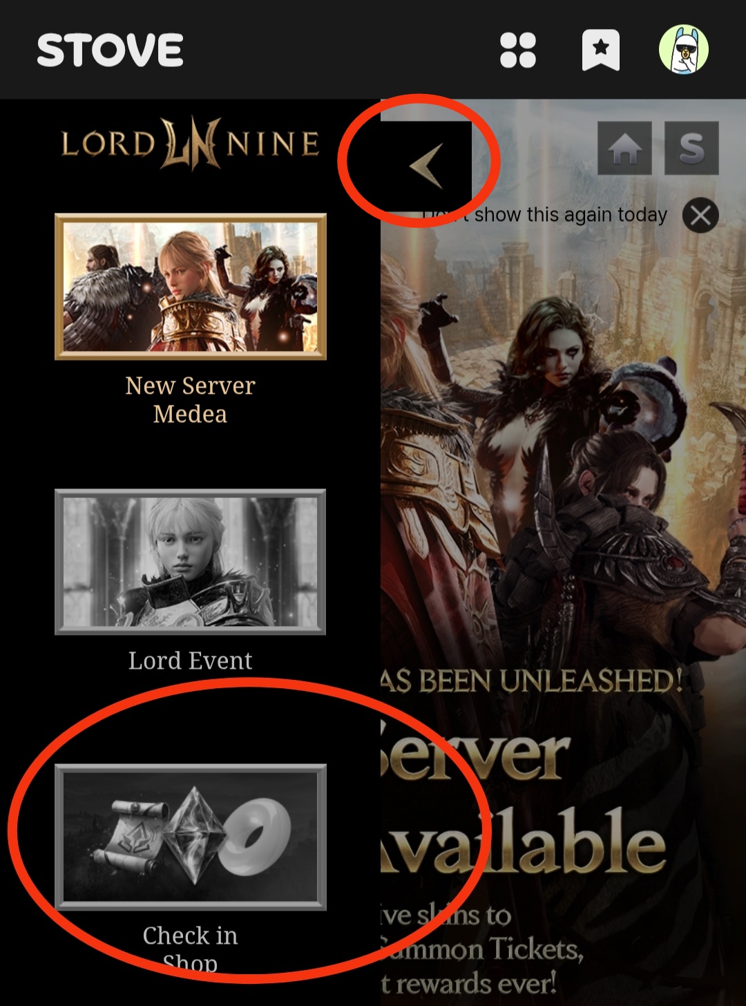 5. On the left side you will see the shop check in and thats it